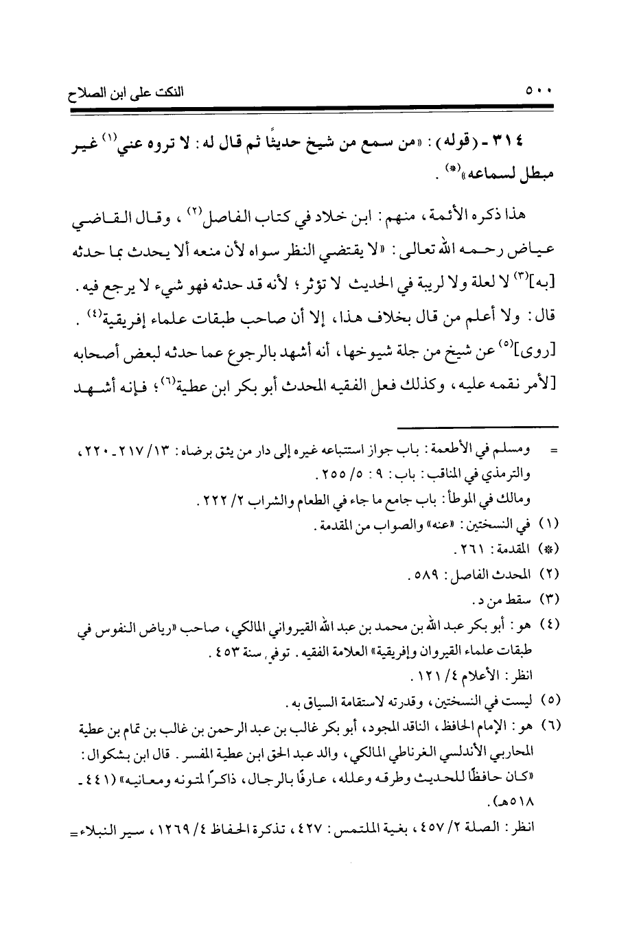 314 - (قَوْله) من سمع من شيخ حَدِيثا ثمَّ قَالَ لَهُ لَا تروه عني (1) غير مُبْطل لسماعه