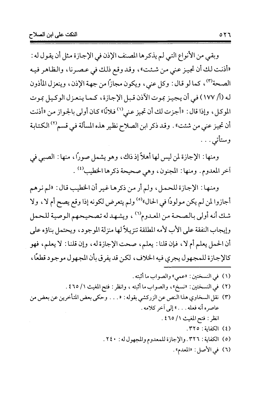وَمِنْهَا الْإِجَازَة لمن لَيْسَ لَهَا أَهلا إِذْ ذَاك وَهُوَ يَشْمَل صورا مِنْهَا الصَّبِي فِي آخر الْمَعْدُوم وَمِنْهَا الْمَجْنُون وَهِي صَحِيحَة ذكرهَا الْخَطِيب (4)