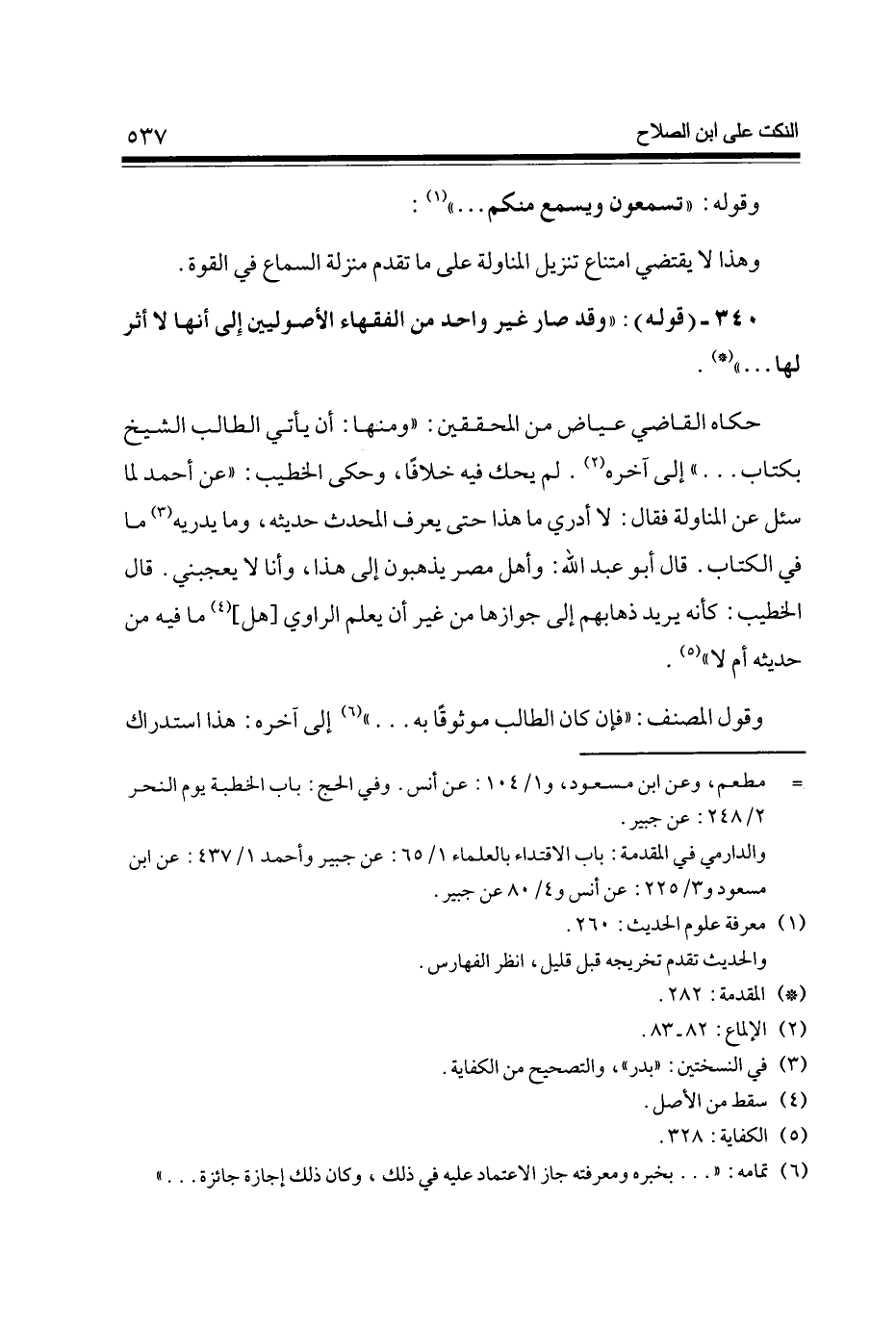 340 - (قَوْله) وَقد صَار غير وَاحِد من الْفُقَهَاء الْأُصُولِيِّينَ إِلَى أَنَّهَا لَا أثر لَهَا (4 5 6 7 8 9 آخِره هَذَا اسْتِدْرَاك