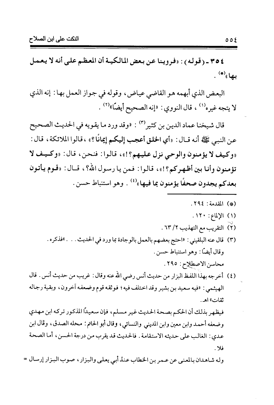 354 - (قَوْله) فروينا عَن بعض الْمَالِكِيَّة أَن الْمُعظم على أَنه لَا يعْمل بهَا (3 4 5 6 7 قَالَ قوم يأْتونَ بعدكم يَجدونَ صحفا يُؤمنُونَ بِمَا فِيهَا (4) وَهُوَ استنباط حسن