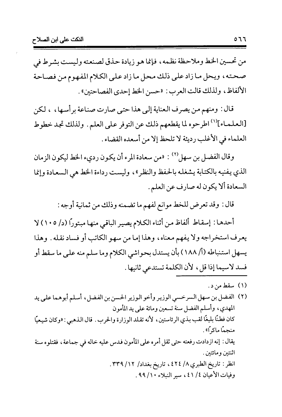 وَقَالَ الْفضل بن سهل (2) من سَعَادَة الْمَرْء أَن يكون رَدِيء الْخط ليَكُون الزَّمَان الَّذِي يفنيه بِالْكِتَابَةِ يشْغلهُ بِالْحِفْظِ وَالنَّظَر وَلَيْسَت رداءة الْخط هِيَ السَّعَادَة وَإِنَّمَا السَّعَادَة أَلا يكون لَهُ صَارف عَن الْعلم