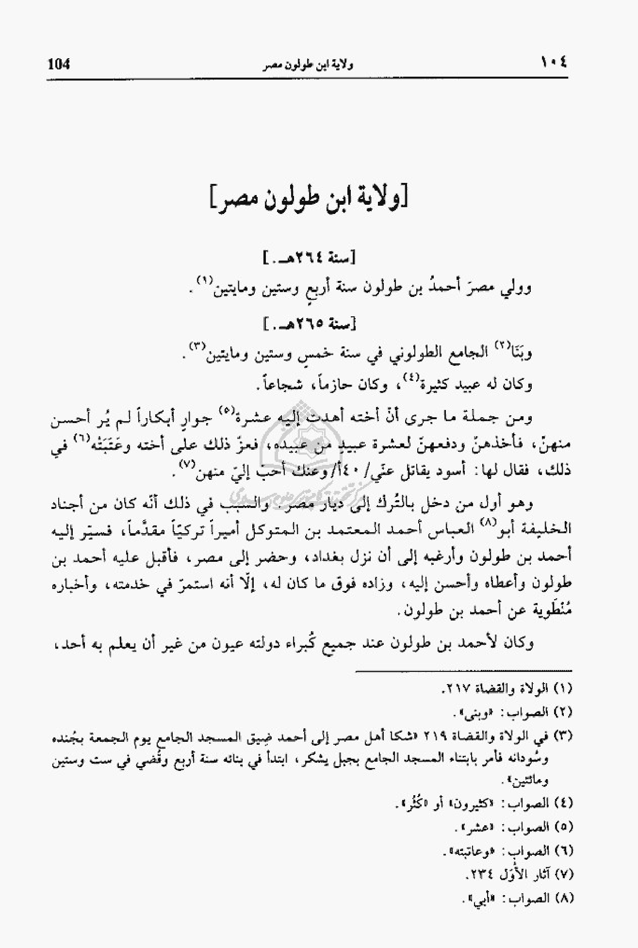 (¬3) في الولاة والقضاة 219 «شكا أهل مصر إلى أحمد ضيق المسجد الجامع يوم الجمعة بجنده وسودانه فأمر بابتناء المسجد الجامع بجبل يشكر، ابتدأ في بنائه سنة أربع وقضي في ست وستين ومائتين».