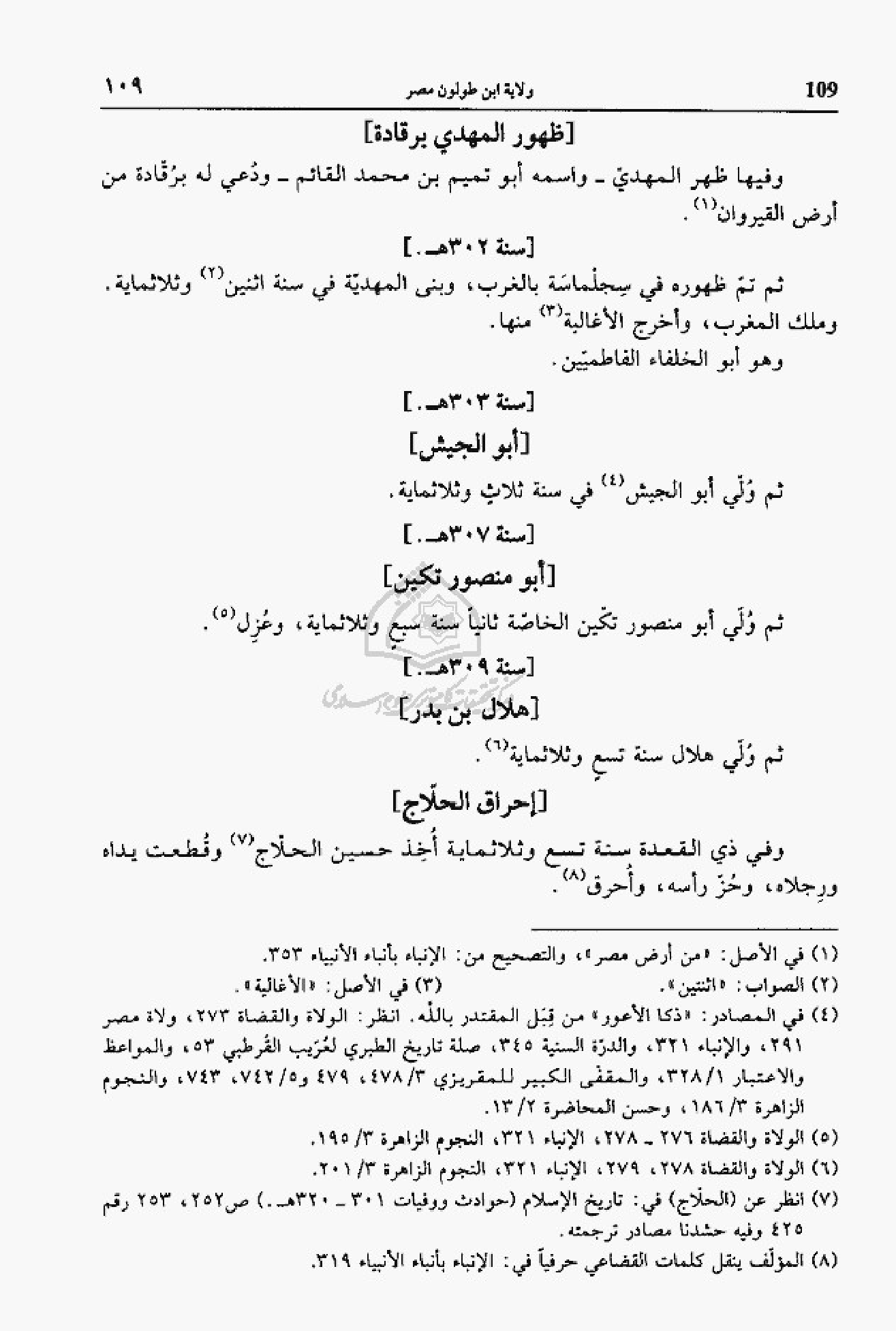(¬5) الولاة والقضاة 276 - 278، الإنباء 321، النجوم الزاهرة 3/ 195.