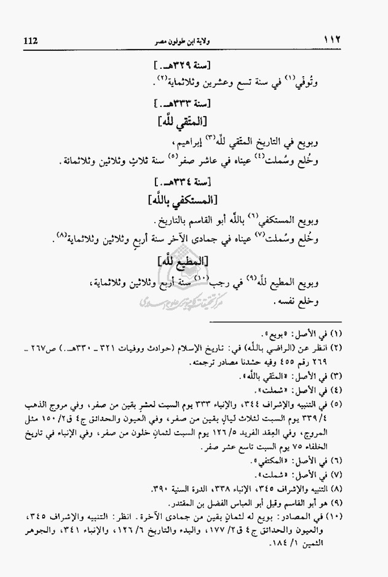 (¬2) انظر عن (الراضي بالله) في: تاريخ الإسلام (حوادث ووفيات 321 - 330 هـ). ص 267 - 269 رقم 455 وفيه حشدنا مصادر ترجمته.