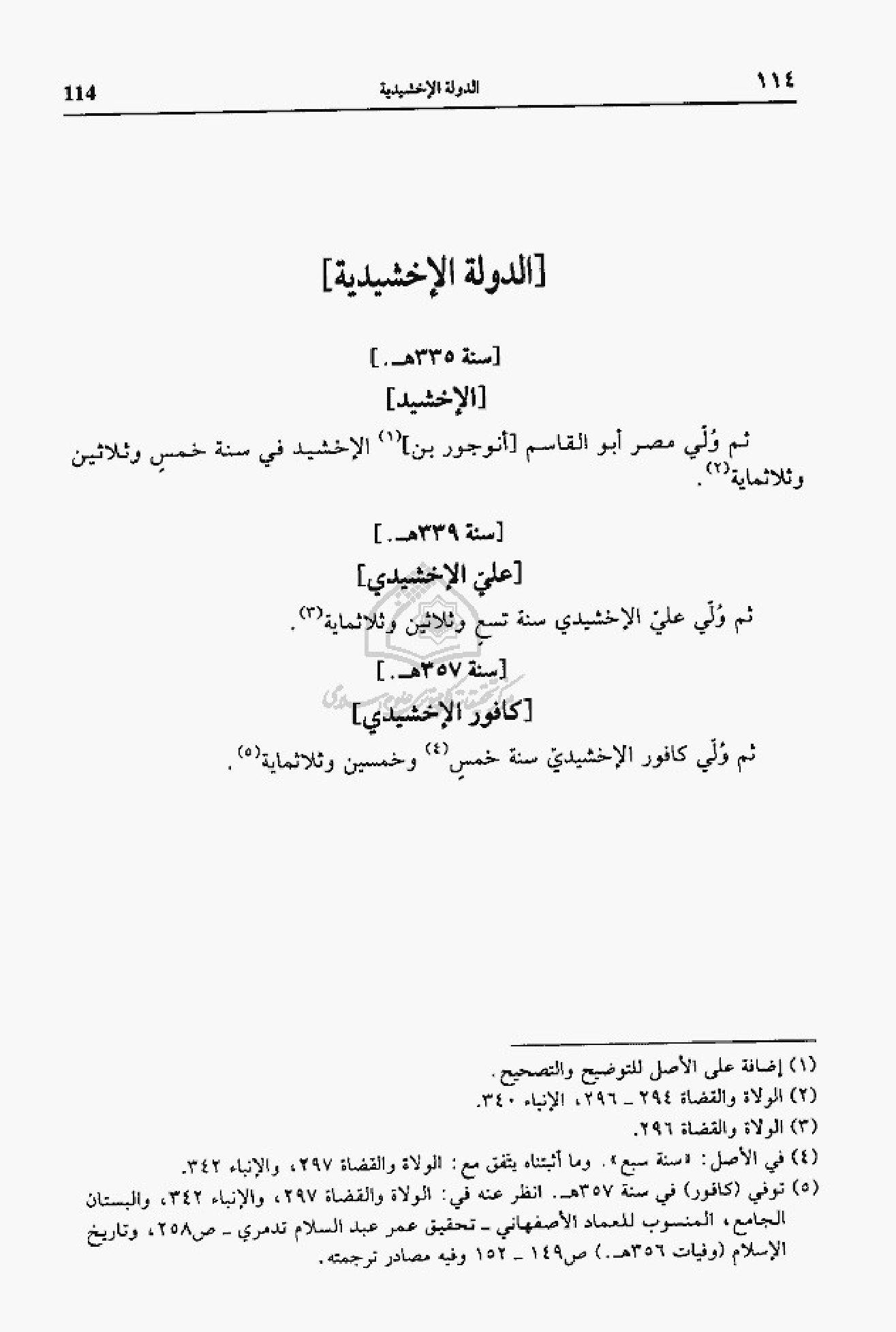 (¬5) توفي (كافور) في سنة 357 هـ. انظر عنه في: الولاة والقضاة 297، والإنباء 342، والبستان الجامع، المنسوب للعماد الأصفهاني - تحقيق عمر عبد السلام تدمري - ص 258، وتاريخ الإسلام (وفيات 356 هـ). ص 149 - 152 وفيه مصادر ترجمته.