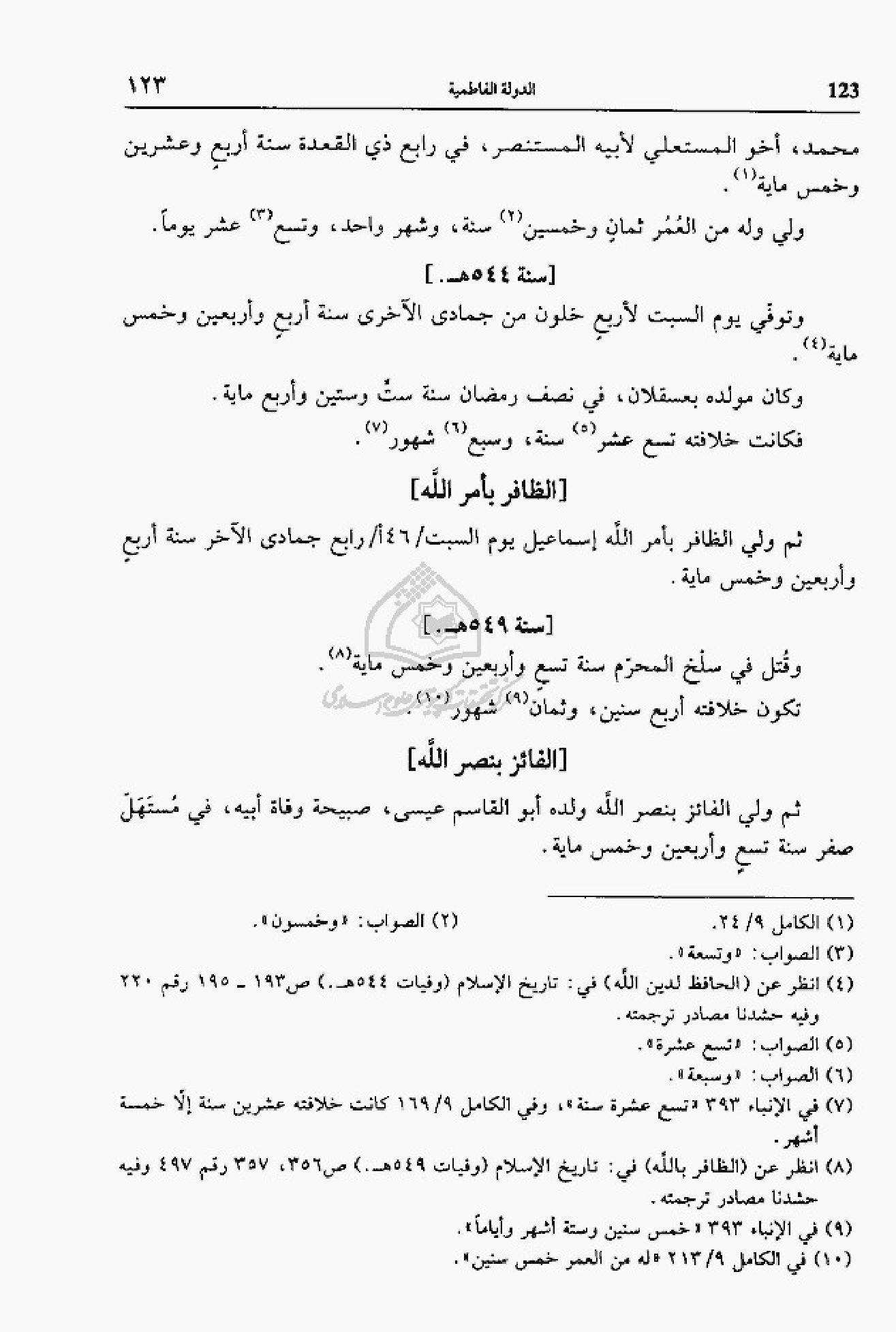 (¬4) انظر عن (الحافظ لدين الله) في: تاريخ الإسلام (وفيات 544 هـ). ص 193 - 195 رقم 220 وفيه حشدنا مصادر ترجمته.