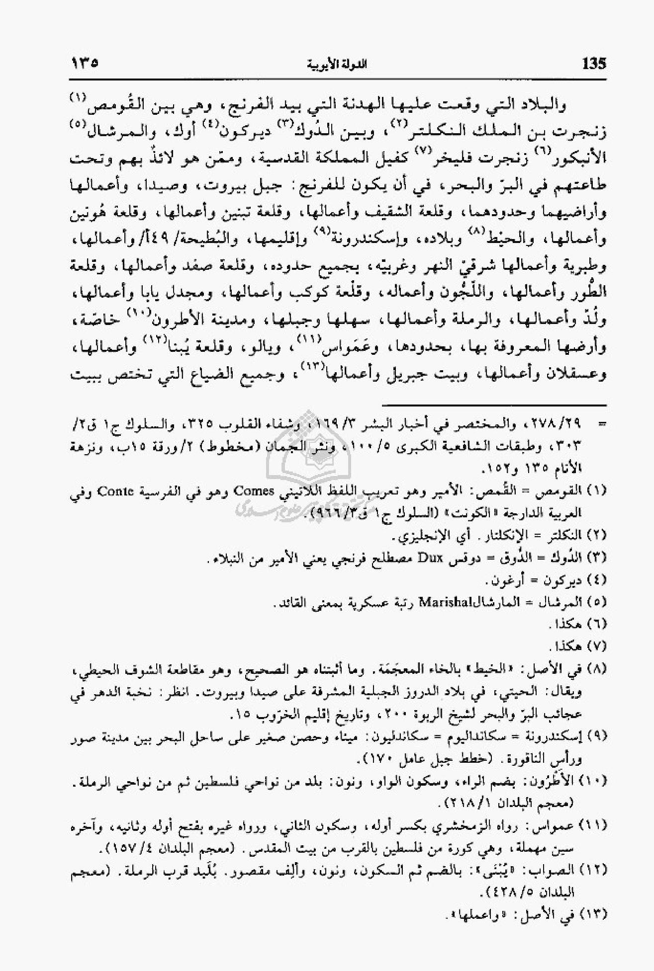 (¬1) القومص - القمص: الأمير وهو تعريب اللفظ اللاتيني Comes وهو في الفرسية Conte وفي العربية الدارجة «الكونت» (السلوك ج 1 ق 3/ 966).