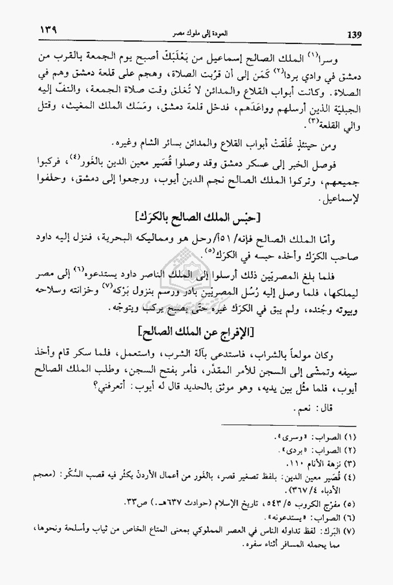 وأمّا الملك الصالح فإنه رحل هو ومماليكه البحرية، فنزل إليه داود صاحب الكرك وأخذه حبسه في الكرك (¬5).