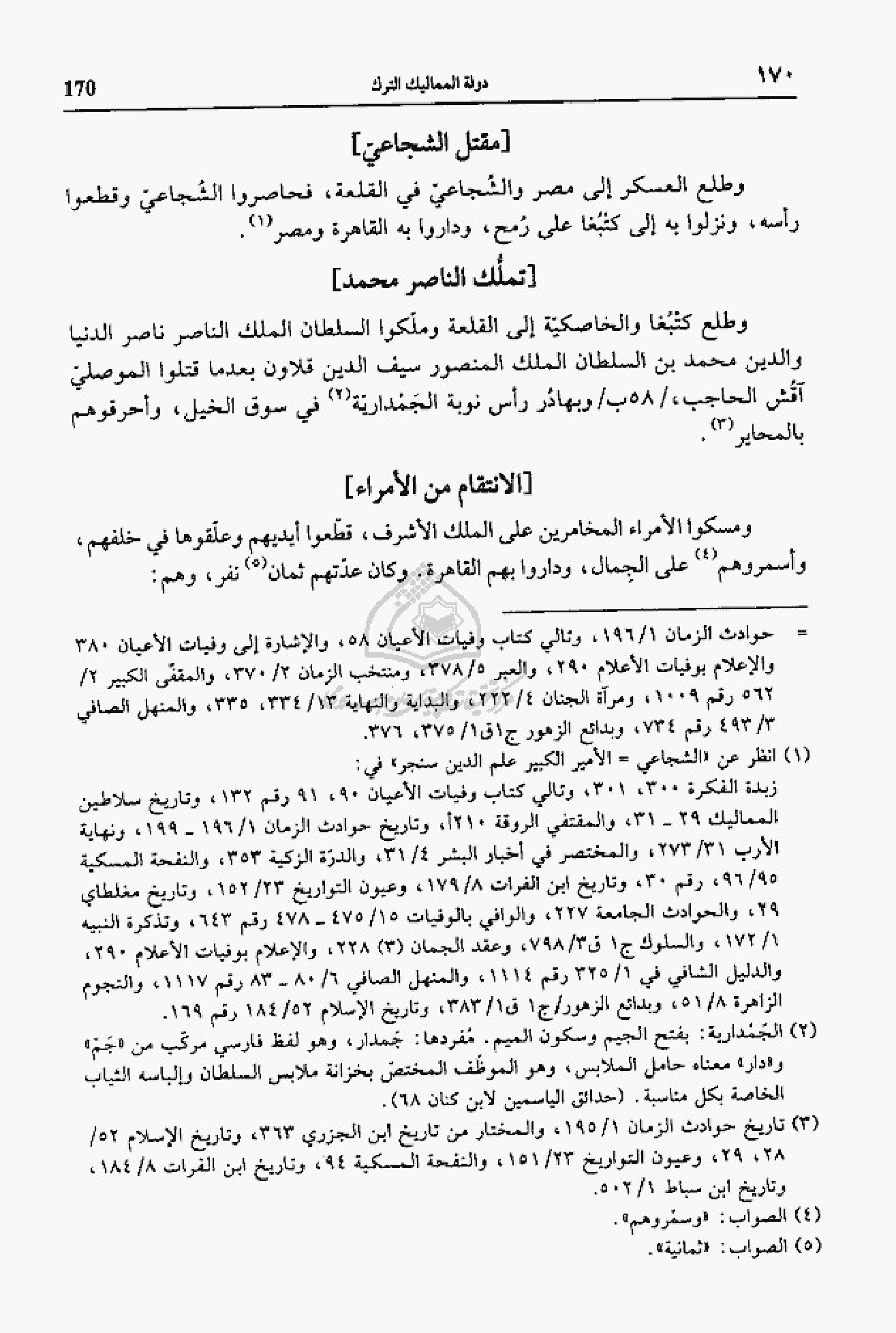 (¬3) تاريخ حوادث الزمان 1/ 195، والمختار من تاريخ ابن الجزري 363، وتاريخ الإسلام 52/ 28، 29، وعيون التواريخ 23/ 151، والنفحة المسكية 94، وتاريخ ابن الفرات 8/ 184، وتاريخ ابن سباط 1/ 502.
