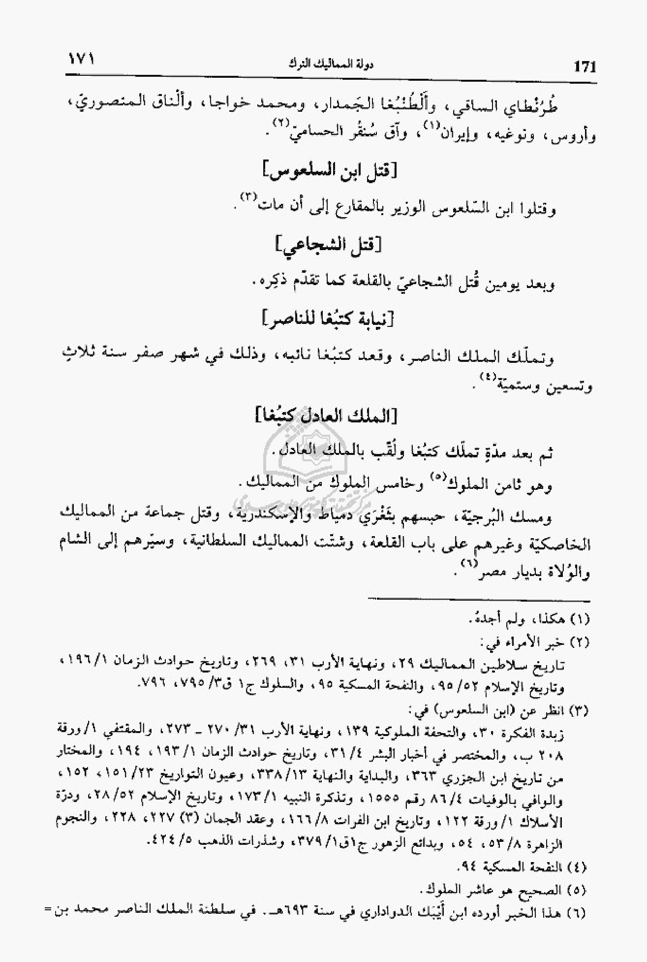 (¬3) انظر عن (ابن السلعوس) في: زبدة الفكرة 30، والتحفة الملوكية 139، ونهاية الأرب 31/ 270 - 273، والمقتفي 1 / ورقة 208 ب، والمختصر في أخبار البشر 4/ 31، وتاريخ حوادث الزمان 1/ 193، 194، والمختار من تاريخ ابن الجزري 363، والبداية والنهاية 13/ 338، وعيون التواريخ 23/ 151، 152، والوافي بالوفيات 4/ 86 رقم 1555، وتذكرة النبيه 1/ 173، وتاريخ الإسلام 52/ 28، ودرّة الأسلاك 1 / ورقة 122، وتاريخ ابن الفرات 8/ 166، وعقد الجمان (3) 227، 228، والنجوم الزاهرة 8/ 53، 54، وبدائع الزهور ج 1 ق 1/ 379، وشذرات الذهب 5/ 424.