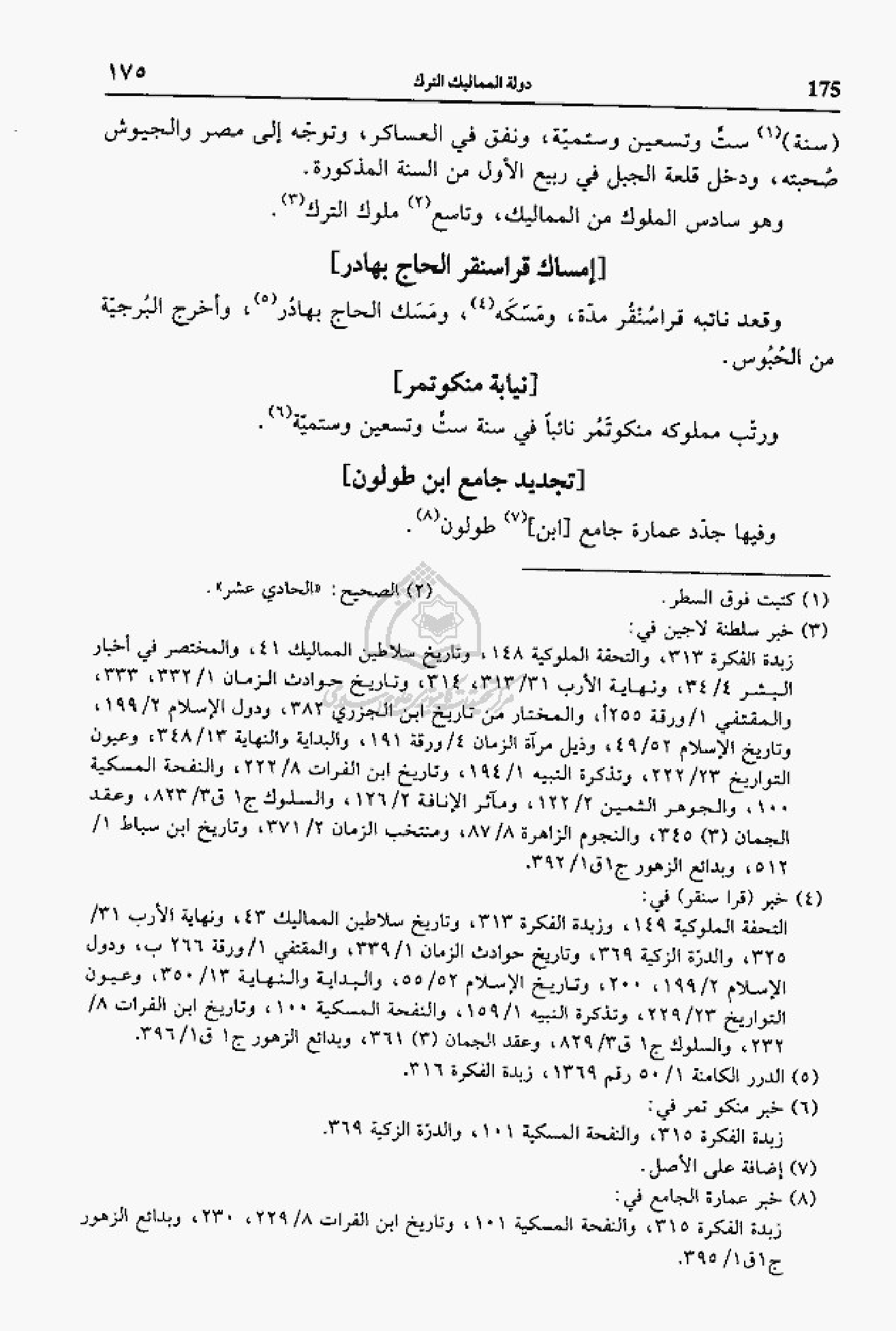 (¬8) خبر عمارة الجامع في: زبدة الفكرة 315، والنفحة المسكية 101، وتاريخ ابن الفرات 8/ 229، 230، وبدائع الزهور ج 1 ق 1/ 395.