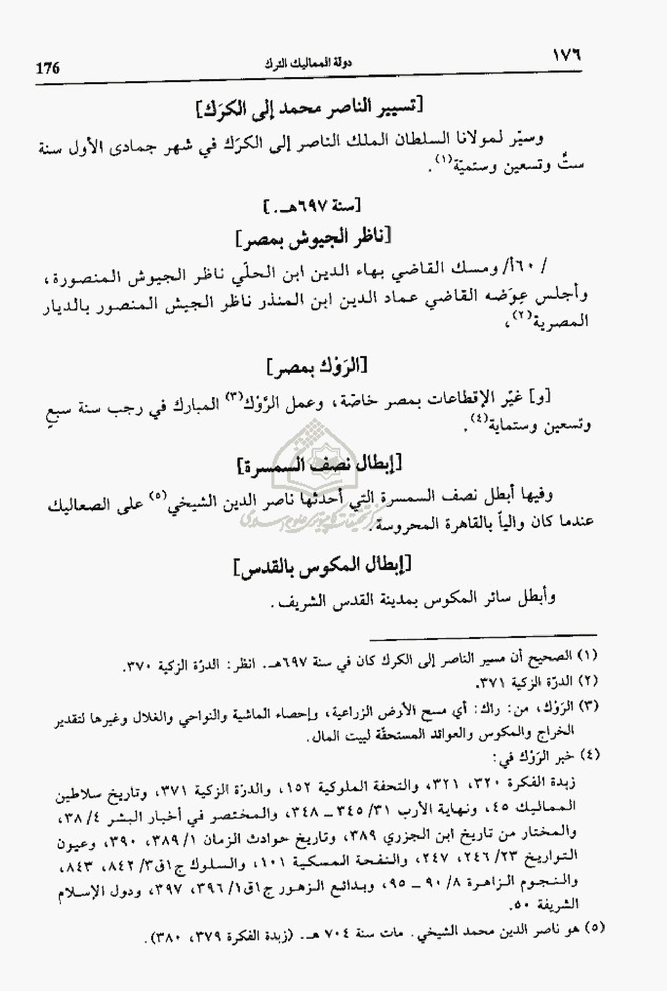 (¬4) خبر الروك في: زبدة الفكرة 320، 321، والتحفة الملوكية 152، والدرّة الزكية 371، وتاريخ سلاطين المماليك 45، ونهاية الأرب 31/ 345 - 348، والمختصر في أخبار البشر 4/ 38، والمختار من تاريخ ابن الجزري 389، وتاريخ حوادث الزمان 1/ 389، 390، وعيون التواريخ 23/ 246، 247، والنفحة المسكية 101، والسلوك ج 1 ق 3/ 842، 843، والنجوم الزاهرة 8/ 90 - 95، وبدائع الزهور ج 1 ق 1/ 396، 397، ودول الإسلام الشريفة 50.
