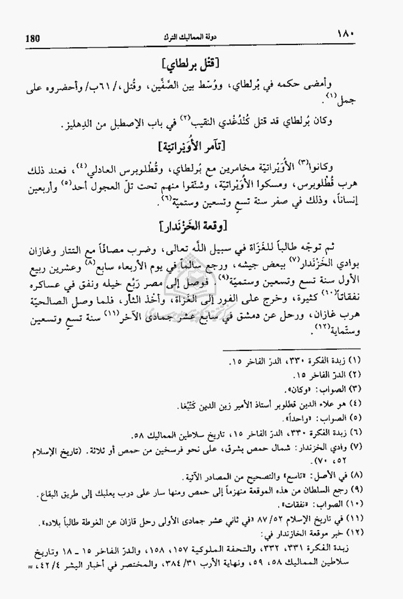 (¬12) خبر موقعة الخازندار في: زبدة الفكرة 331، 332، والتحفة الملوكية 157، 158، والدرّ الفاخر 15 - 18 وتاريخ سلاطين المماليك 58، 59، ونهاية الأرب 31/ 384، والمختصر في أخبار البشر 4/ 42، =