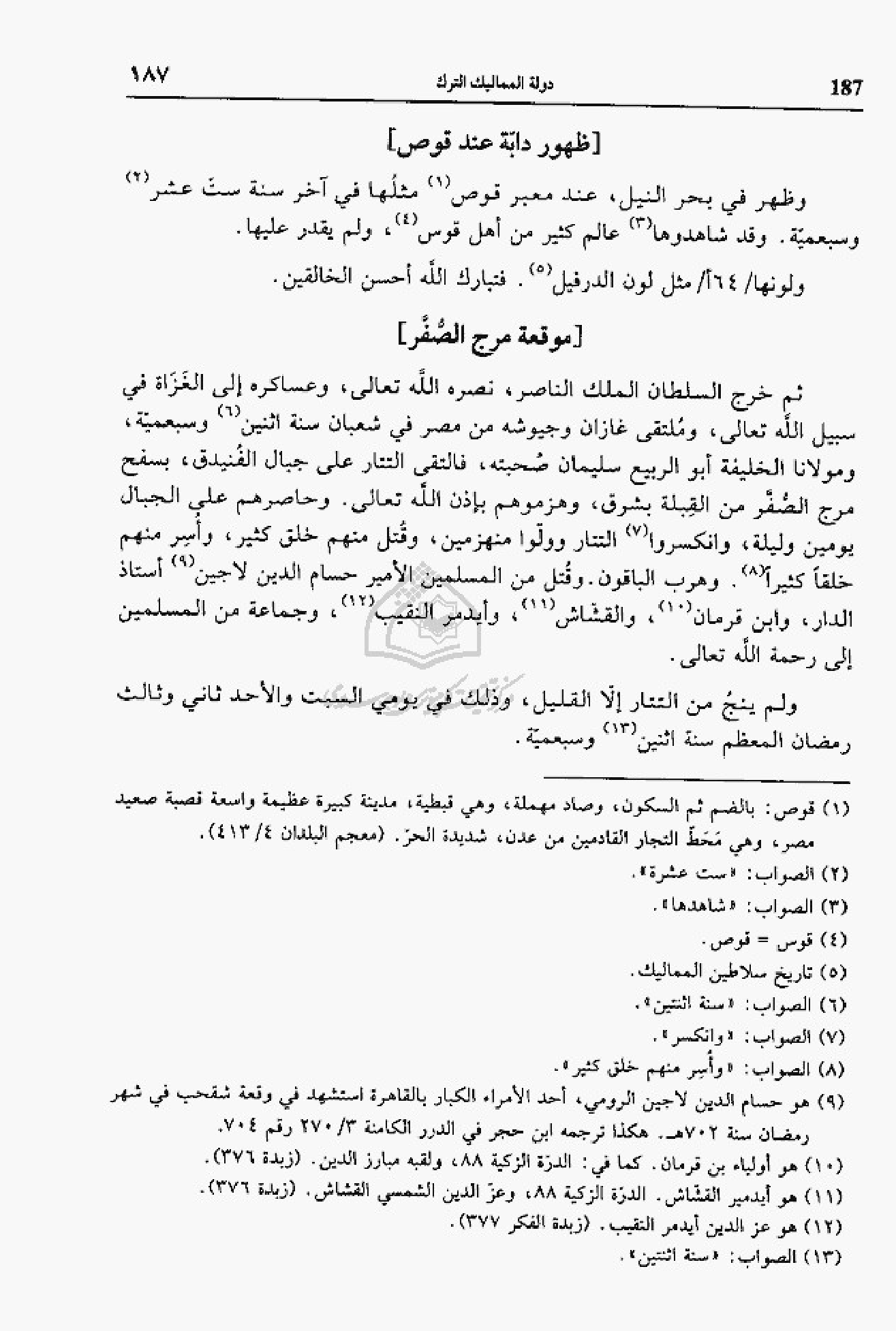 (¬9) هو حسام الدين لاجين الرومي، أحد الأمراء الكبار بالقاهرة استشهد في وقعة شقحب في شهر رمضان سنة 702 هـ. هكذا ترجمه ابن حجر في الدرر الكامنة 3/ 270 رقم 704.