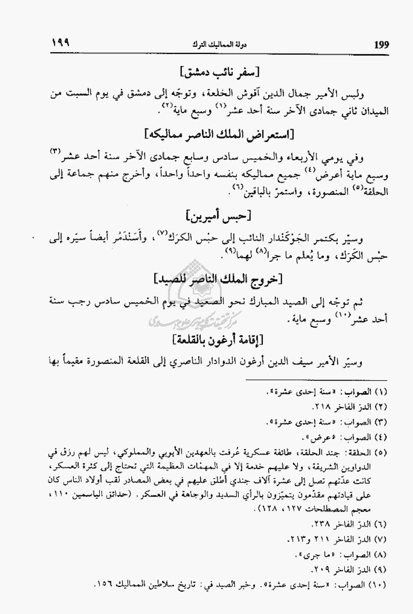 (¬5) الحلقة: جند الحلقة، طائفة عسكرية عرفت بالعهدين الأيوبي والمملوكي، ليس لهم رزق في الدواوين الشريفة، ولا عليهم خدمة إلا في المهمّات العظيمة التي تحتاج إلى كثرة العسكر، كانت عدّتهم تصل إلى عشرة آلاف جندي أطلق عليهم في بعض المصادر لقب أولاد الناس كان على قيادتهم مقدّمون يتميّزون بالرأي السديد والوجاهة في العسكر. (حدائق الياسمين 110، معجم المصطلحات 127، 128).