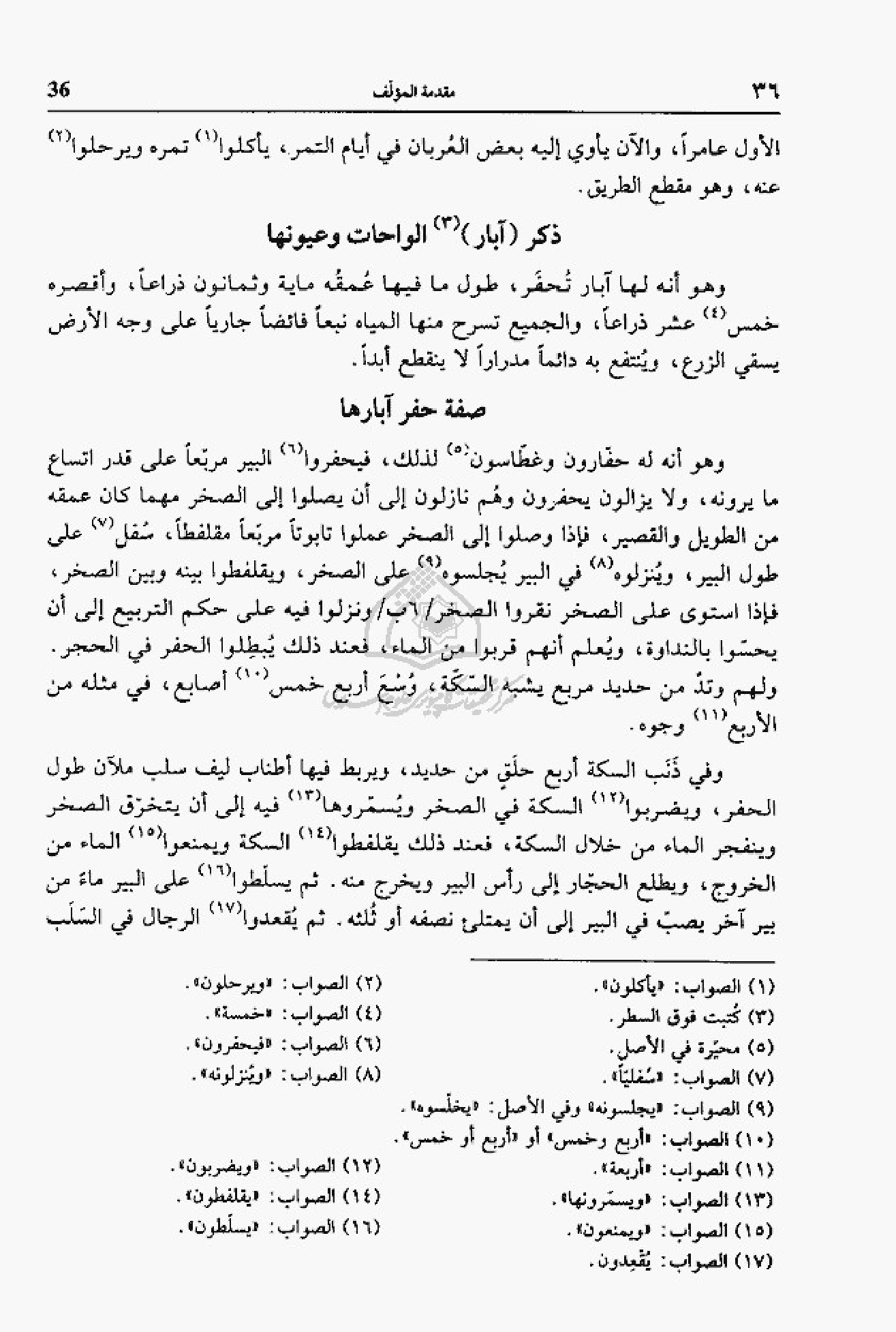 وهو أنه لها آبار تحفر، طول ما فيها عمقه ماية وثمانون ذراعا، وأقصره خمس (¬4) عشر ذراعا، والجميع تسرح منها المياه نبعا فائضا جاريا على وجه الأرض يسقي الزرع، وينتفع به دائما مدرارا لا ينقطع أبدا.