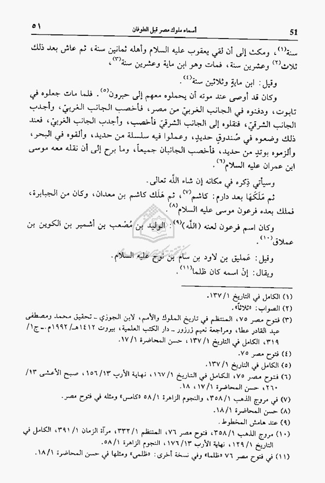 (¬10) مروج الذهب 1/ 358، فتوح مصر 76، المنتظم 1/ 332، مرآة الزمان 1/ 391، الكامل في التاريخ 1/ 129، نهاية الأرب 13/ 176، النجوم الزاهرة 1/ 58.