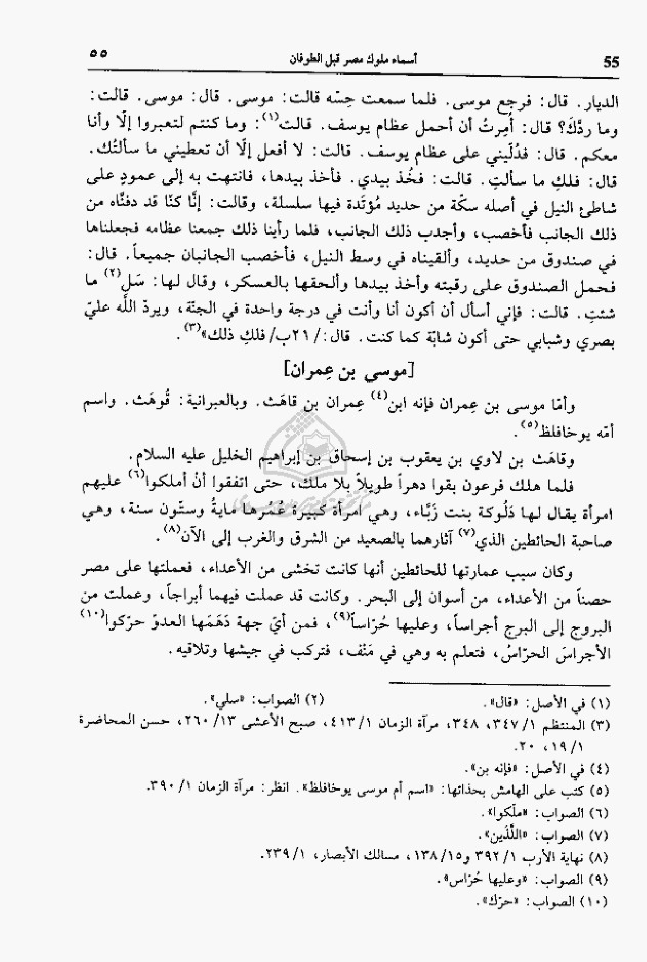 وأمّا موسى بن عمران فإنه ابن (¬4) عمران بن قاهث. وبالعبرانية: قوهث. واسم أمّه يوخافلظ (¬5).