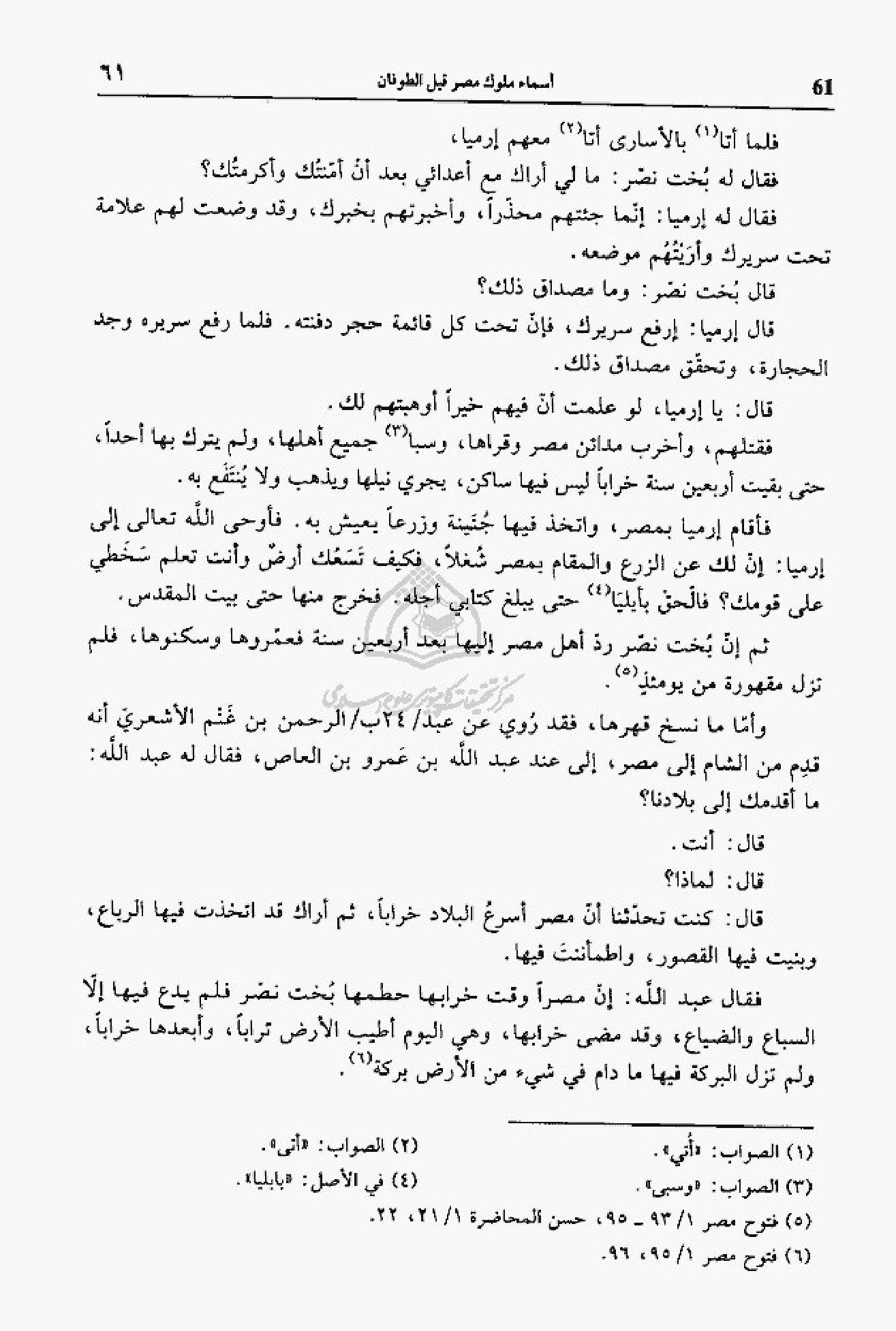 (¬5) فتوح مصر 1/ 93 - 95، حسن المحاضرة 1/ 21، 22.