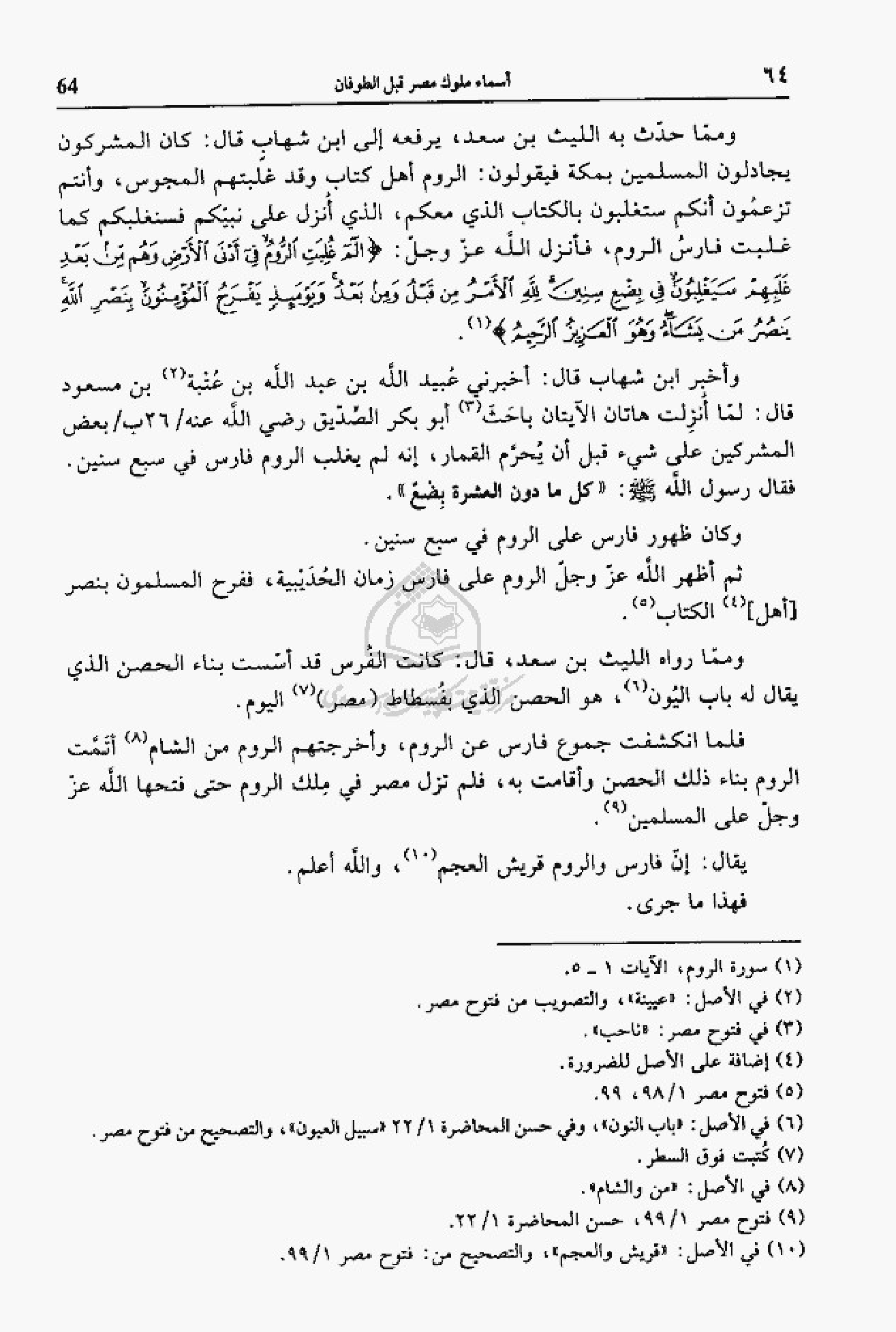(¬9) فتوح مصر 1/ 99، حسن المحاضرة 1/ 22.