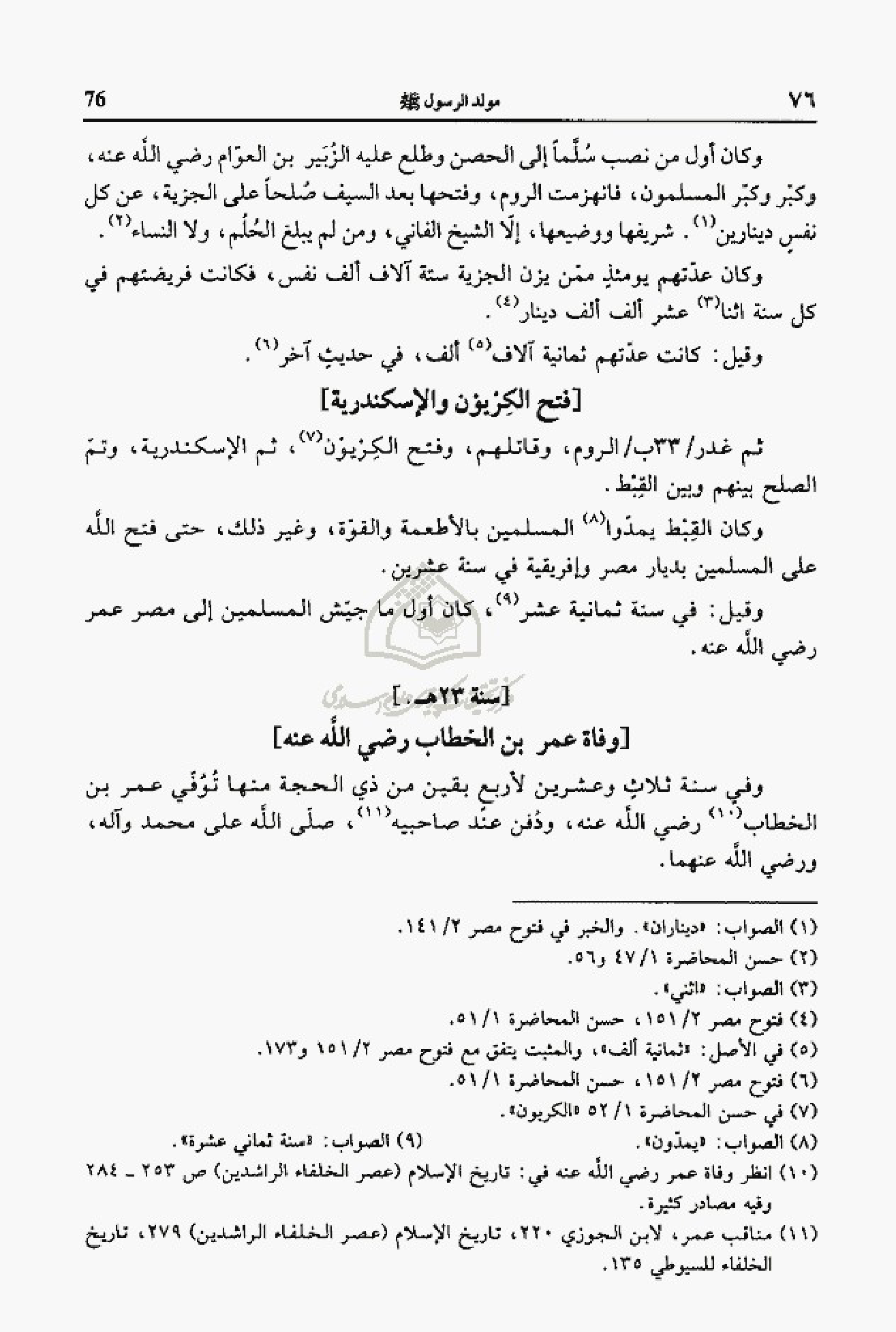 (¬11) مناقب عمر، لابن الجوزي 220، تاريخ الإسلام (عصر الخلفاء الراشدين) 279، تاريخ الخلفاء للسيوطي 135.