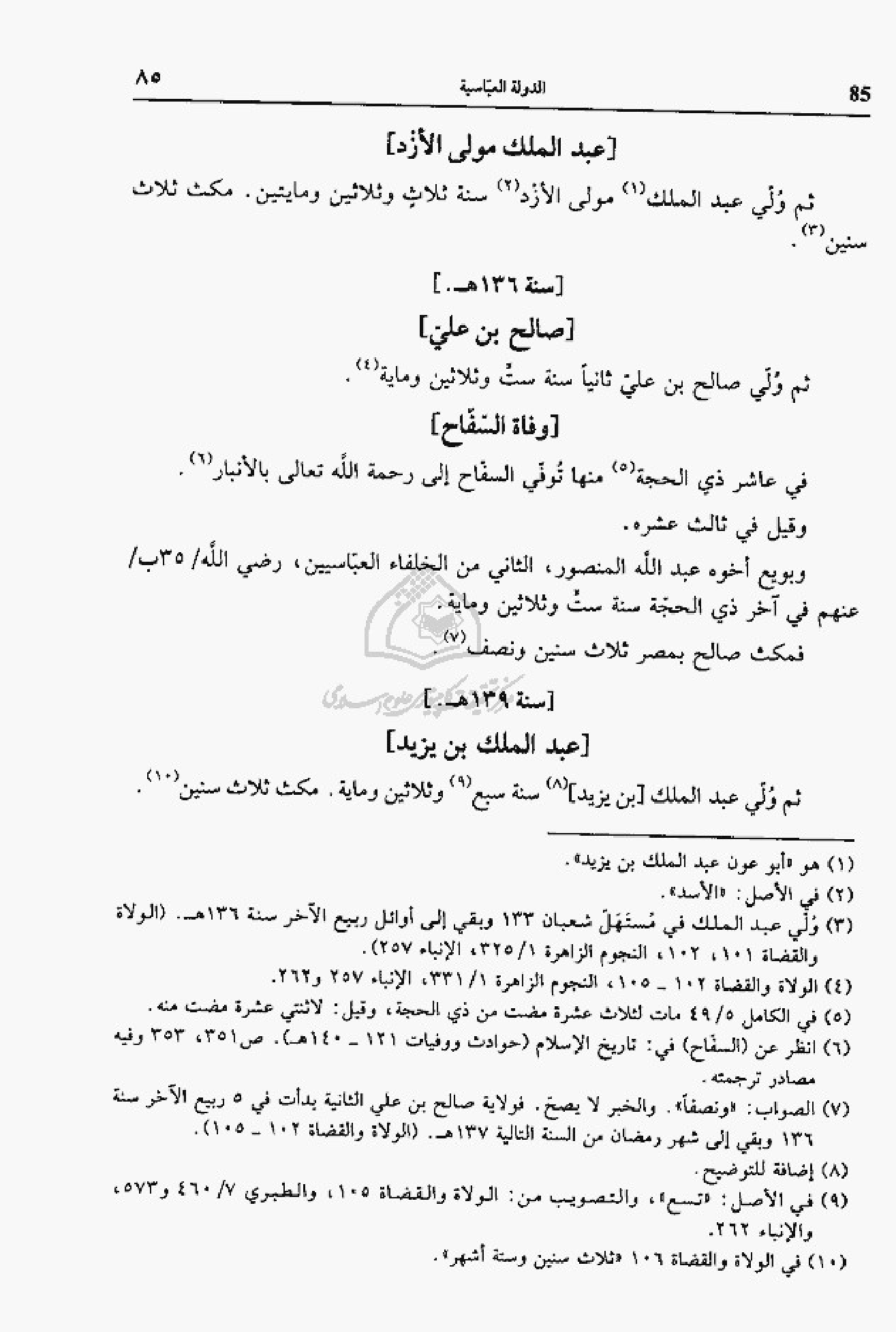 (¬6) انظر عن (السفّاح) في: تاريخ الإسلام (حوادث ووفيات 121 - 140 هـ). ص 351، 353 وفيه مصادر ترجمته.