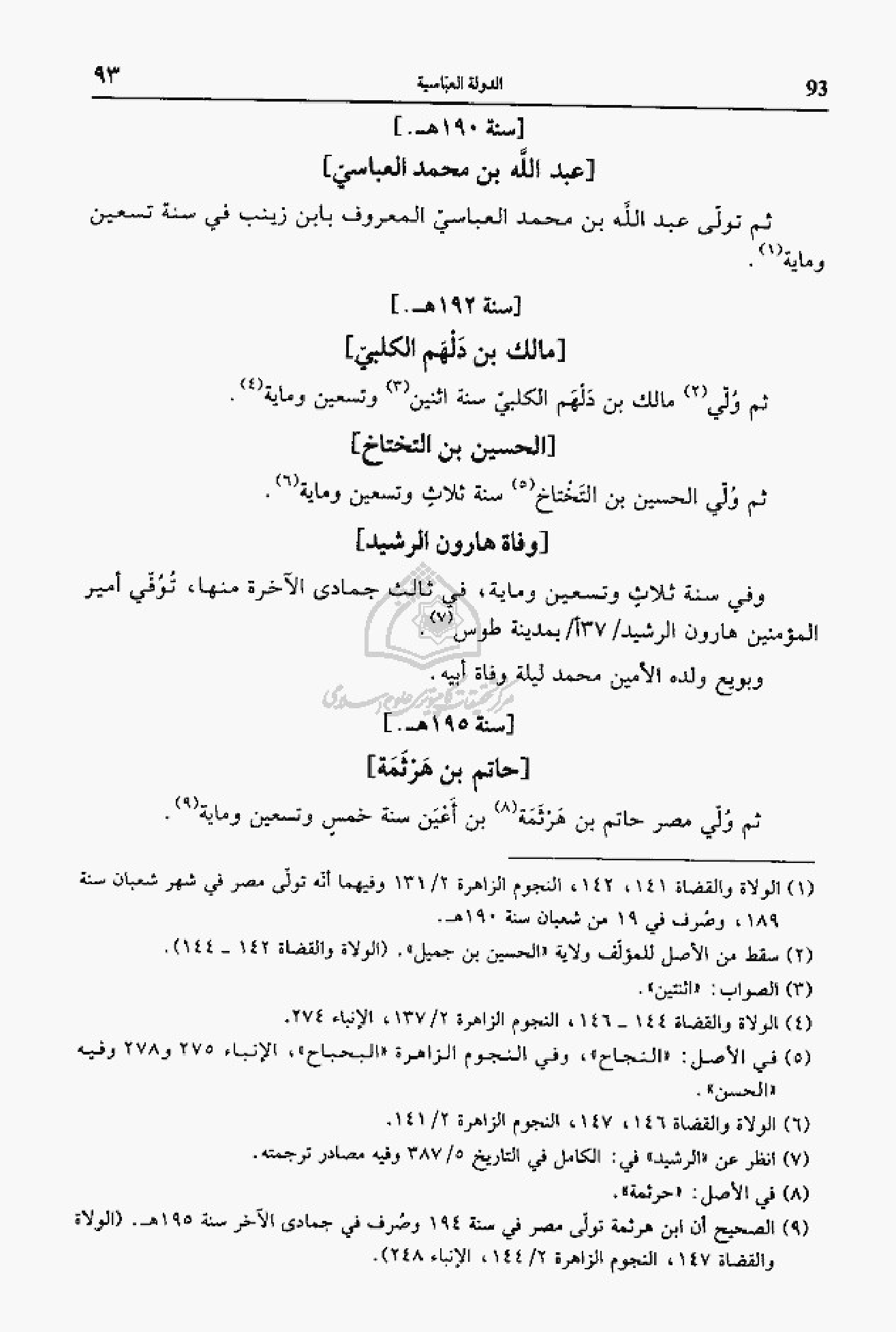 (¬9) الصحيح أن ابن هرثمة تولّى مصر في سنة 194 وصرف في جمادى الآخر سنة 195 هـ. (الولاة والقضاة 147، النجوم الزاهرة 2/ 144، الإنباء 248).