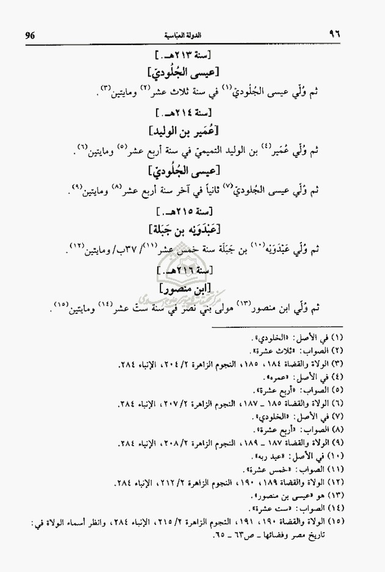 (¬15) الولاة والقضاة 190، 191، النجوم الزاهرة 2/ 215، الإنباء 284، وانظر أسماء الولاة في: تاريخ مصر وفضائها - ص 63 - 65.