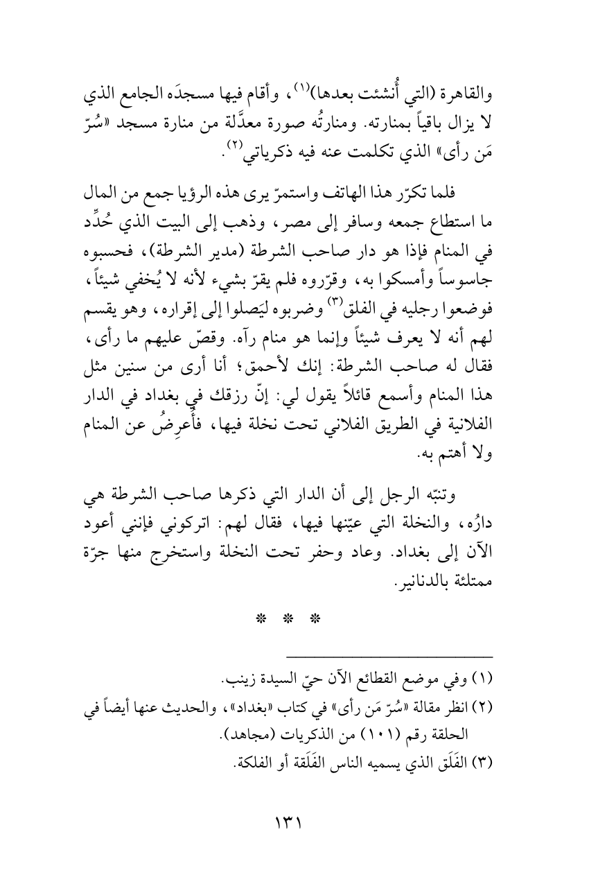 (¬2) انظر مقالة «سُرّ مَن رأى» في كتاب «بغداد»، والحديث عنها أيضاً في الحلقة رقم (101) من الذكريات (مجاهد).