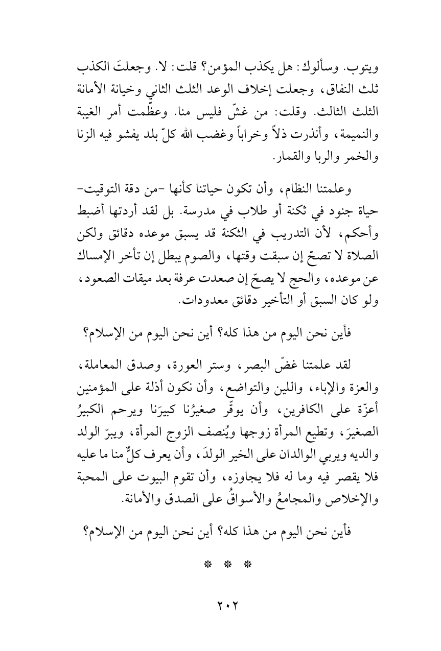 فأين نحن اليوم من هذا كله؟ أين نحن اليوم من الإسلام؟