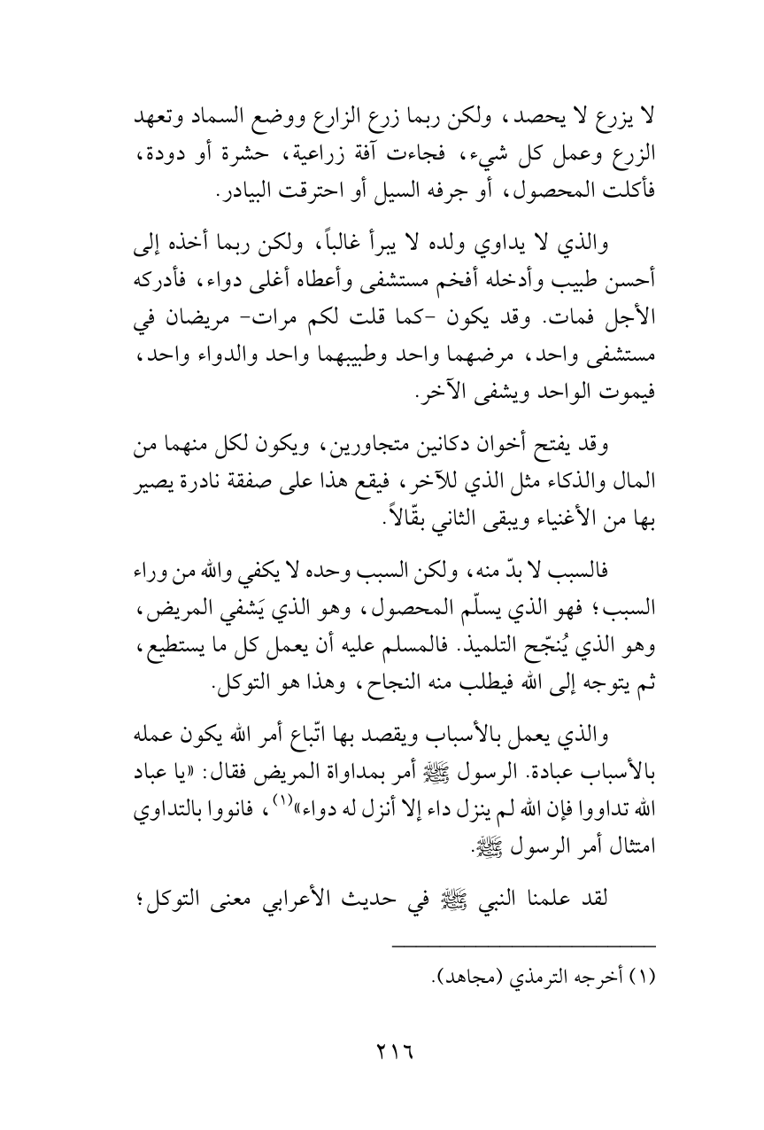 لقد علمنا النبي صلى الله عليه وسلم في حديث الأعرابي معنى التوكل؛
