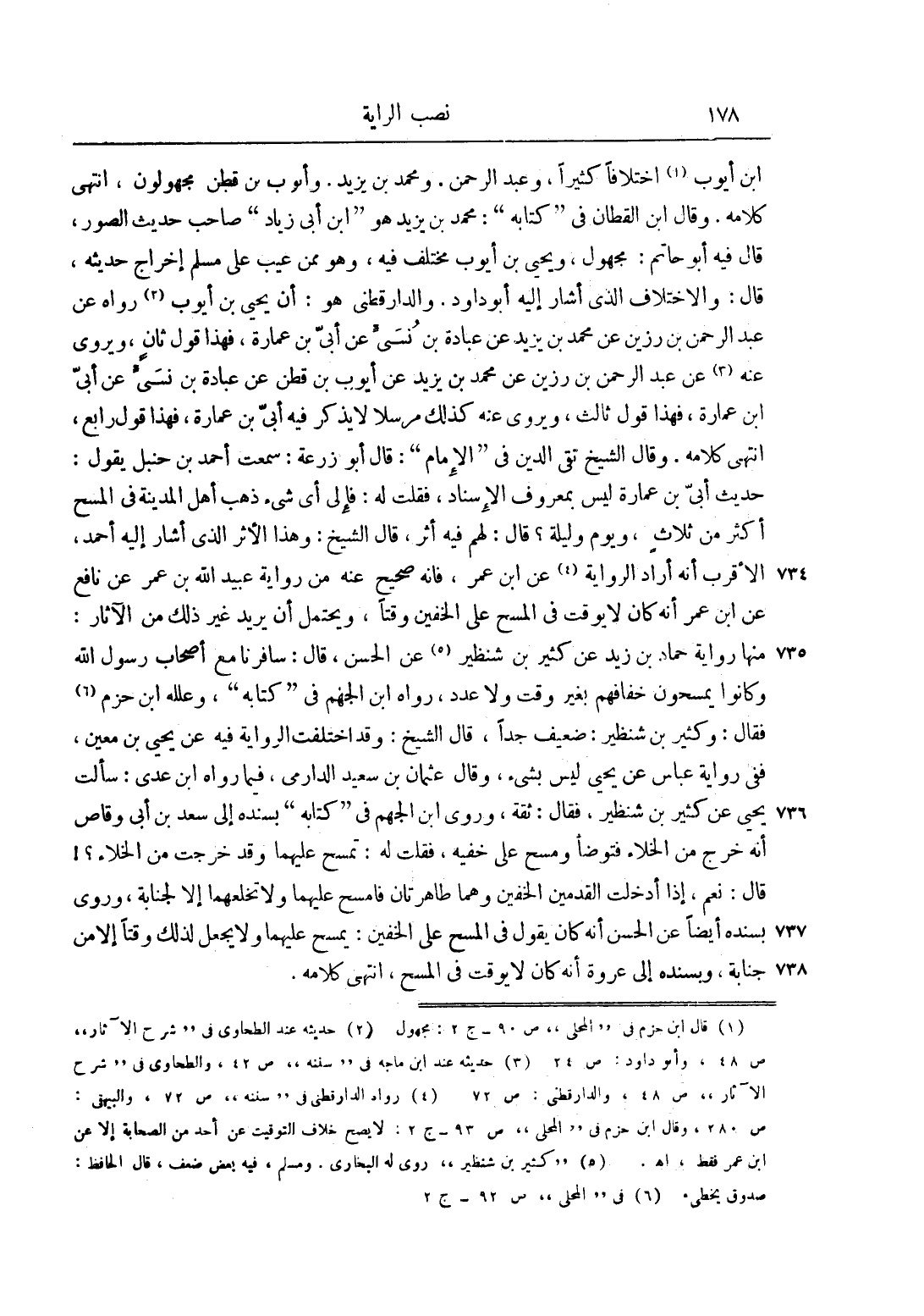 بْنِ أَيُّوبَ1 اخْتِلَافًا كَثِيرًا، وَعَبْدُ الرَّحْمَنِ. وَمُحَمَّدُ بْنُ يَزِيدَ. وَأَيُّوبُ بْنُ قَطَنٍ مَجْهُولُونَ، انْتَهَى كَلَامُهُ وَقَالَ ابْنُ الْقَطَّانِ فِي كِتَابِهِ: مُحَمَّدُ بْنُ يَزِيدَ هُوَ ابْنُ أَبِي زِيَادٍ صَاحِبُ حَدِيثِ الصُّوَرِ، قَالَ فِيهِ أَبُو حَاتِمٍ: مَجْهُولٌ، وَيَحْيَى بْنُ أَيُّوبَ مُخْتَلَفٌ به، وَهُوَ مِمَّنْ عِيبَ عَلَى مُسْلِمٍ إخْرَاجُ حَدِيثِهِ، قَالَ: وَالِاخْتِلَافُ الَّذِي أَشَارَ إلَيْهِ أَبُو دَاوُد. والدارقطني هُوَ: أَنَّ يَحْيَى بْنَ أَيُّوبَ2 رَوَاهُ عَنْ عَبْدِ الرَّحْمَنِ بْنِ رَزِينٍ عَنْ مُحَمَّدِ بْنِ يَزِيدَ عَنْ عُبَادَةَ بْنِ نُسَيٍّ عَنْ أُبَيِّ بْنِ عُمَارَةَ، فَهَذَا قَوْلٌ ثَانٍ، وَيُرْوَى عَنْهُ3 عَنْ عَبْدِ الرَّحْمَنِ بْنِ رَزِينٍ عَنْ مُحَمَّدِ بْنِ يَزِيدَ عَنْ أَيُّوبَ بْنِ قَطَنٍ عَنْ عُبَادَةَ بْنِ نُسَيٍّ عَنْ أُبَيِّ بْنِ عُمَارَةَ، فَهَذَا قَوْلٌ ثَالِثٌ، وَيُرْوَى عَنْهُ كَذَلِكَ مُرْسَلًا لَا يُذْكَرُ فِيهِ أُبَيّ بْنُ عُمَارَةَ، فَهَذَا قَوْلٌ رَابِعٌ، انْتَهَى كَلَامُهُ. وَقَالَ الشَّيْخُ تَقِيُّ الدِّينِ فِي الْإِمَامِ: قَالَ أَبُو زُرْعَةَ: سَمِعْت أَحْمَدَ بْنَ حَنْبَلٍ يَقُولُ: حَدِيثُ أُبَيِّ بْنِ عُمَارَةَ لَيْسَ بِمَعْرُوفِ الْإِسْنَادِ فَقُلْت لَهُ: فَإِلَى أَيِّ شَيْءٍ ذَهَبَ أَهْلُ الْمَدِينَةِ فِي الْمَسْحِ أَكْثَرَ مِنْ ثَلَاثٍ، وَيَوْمٍ وَلَيْلَةٍ؟ قَالَ: لَهُمْ فِيهِ أَثَرٌ، قَالَ الشَّيْخُ: وَهَذَا الْأَثَرُ الَّذِي أَشَارَ إلَيْهِ أَحْمَدُ، الْأَقْرَبُ أَنَّهُ أَرَادَ الرِّوَايَةَ4 عَنْ ابْنِ عُمَرَ، فَإِنَّهُ صَحِيحٌ عَنْهُ مِنْ رِوَايَةِ عُبَيْدِ اللَّهِ بْنِ عُمَرَ عَنْ نَافِعٍ عَنْ ابْنِ عُمَرَ أَنَّهُ كَانَ لَا يُوَقِّتُ فِي الْمَسْحِ عَلَى الْخُفَّيْنِ وَقْتًا، وَيُحْتَمَلُ أَنْ يُرِيدَ غَيْرَ ذَلِكَ مِنْ الْآثَارِ: مِنْهَا رواية حماد بن يزيد عَنْ كَثِيرِ بْنِ شِنْظِيرٍ5 عَنْ الْحَسَنِ، قَالَ: سَافَرْنَا مَعَ أَصْحَابِ رَسُولِ اللَّهِ وَكَانُوا يَمْسَحُونَ خِفَافَهُمْ بِغَيْرِ وَقْتٍ وَلَا عَدَدٍ، رَوَاهُ ابْنُ الْجَهْمِ فِي كِتَابِهِ، وَعَلَّلَهُ ابْنُ حَزْمٍ6 فَقَالَ: وَكَثِيرُ بْنُ شِنْظِيرٍ: ضَعِيفٌ جِدًّا، قَالَ الشَّيْخُ: وَقَدْ اختلف الرِّوَايَةُ فِيهِ عَنْ يَحْيَى بْنِ مَعِينٍ، فَفِي رِوَايَةِ عَبَّاسٍ عَنْ يَحْيَى لَيْسَ بِشَيْءٍ، وَقَالَ عُثْمَانُ بْنُ سَعِيدٍ الدَّارِمِيُّ، فِيمَا رَوَاهُ ابْنُ عَدِيٍّ: سَأَلْت يَحْيَى عَنْ كَثِيرِ بْنِ شِنْظِيرٍ، فَقَالَ: ثِقَةٌ، وَرَوَى ابْنُ الْجَهْمِ فِي كِتَابِهِ بِسَنَدِهِ إلَى سَعْدِ بْنِ أَبِي وَقَّاصٍ أَنَّهُ خَرَجَ مِنْ الْخَلَاءِ فَتَوَضَّأَ وَمَسَحَ عَلَى خُفَّيْهِ، فَقُلْت لَهُ: تَمْسَحُ عَلَيْهِمَا وَقَدْ خَرَجْت مِنْ الْخَلَاءِ؟! قَالَ: نَعَمْ، إذَا أَدْخَلْت الْقَدَمَيْنِ الْخُفَّيْنِ وَهُمَا طَاهِرَتَانِ فَامْسَحْ عَلَيْهِمَا وَلَا تَخْلَعْهُمَا إلَّا لِجَنَابَةٍ، وَرَوَى بِسَنَدِهِ أَيْضًا عَنْ الْحَسَنِ أَنَّهُ كَانَ يَقُولُ فِي الْمَسْحِ عَلَى الْخُفَّيْنِ: يَمْسَحُ عَلَيْهِمَا وَلَا يَجْعَلُ لِذَلِكَ وَقْتًا إلَّا مِنْ جَنَابَةٍ، ويسنده إلَى عُرْوَةَ أَنَّهُ كَانَ لَا يُوَقِّتُ فِي الْمَسْحِ، انْتَهَى كَلَامُهُ.