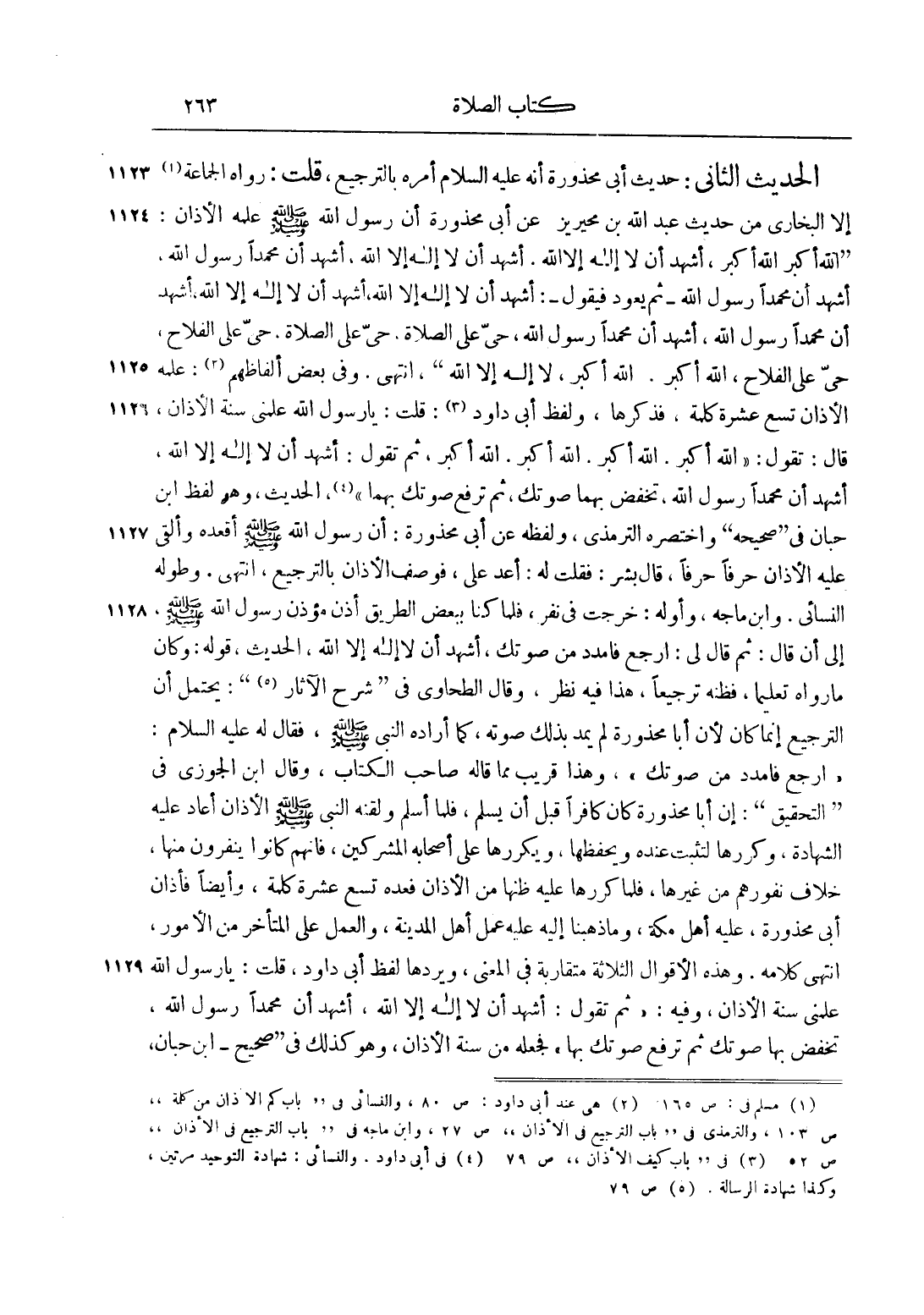 2 هي عند أبو داود: ص 80، والنسائي في باب كم الأذان من كلمة ص 103، والترمذي في باب الترجيع في الأذان ص 27، وابن ماجه في باب الترجيع في الأذان ص 52.