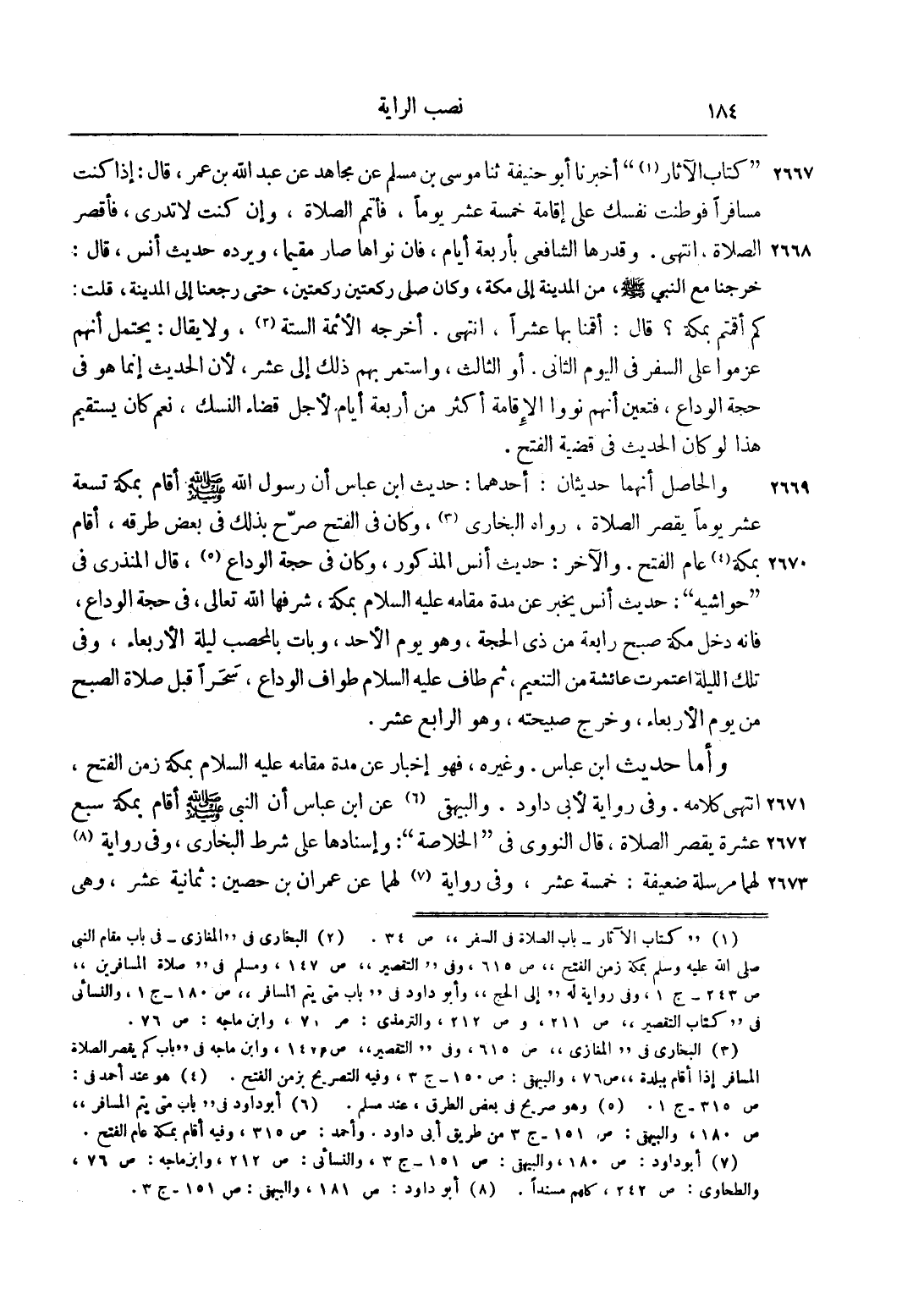 2 البخاري في "المغازي في باب مقام النبي صَلَّى اللَّهُ عَلَيْهِ وَسَلَّمَ بمكة زمن الفتح" ص 615، وفي "التقصير" ص 147، ومسلم في "صلاة المسافرين" ص 243 ج 1، وفي رواية له "إلى الحج" وأبو داود في "باب متى يتم المسافر" ص 180 ج 1، والنسائي في "كتاب التقصير" ص 211، وص 212، والترمذي: ص 71، وابن ماجه: ص 76.