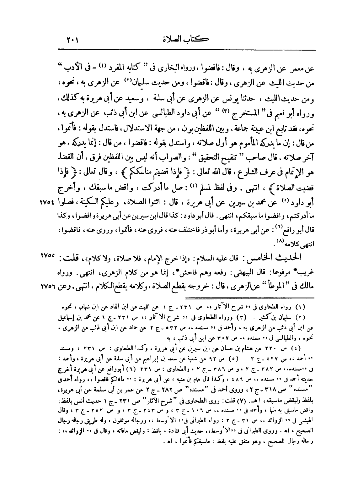 6 أبو رافع عن أبي هريرة أخرج حديثه أحمد في "مسنده" ص 489، وكذا قال همام بن منبه، عن أبي هريرة: "ما فاتكم فاقضوا" رواه أحمد في "مسنده" ص 318 ج 2، وروى أحمد في "مسندهط ص 282 ج 2 عن عمر بن سلمة عن أبي هريرةن بلفظ: "وليقض ما سبقه"، اهـ.