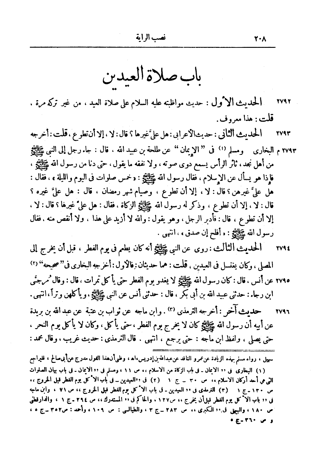الْحَدِيثُ الْأَوَّلُ: حَدِيثُ مُوَاظَبَتِهِ عليه السلام عَلَى صَلَاةِ الْعِيدِ، مِنْ غَيْرِ تَرْكِهِ مَرَّةً، قُلْت: هَذَا مَعْرُوفٌ