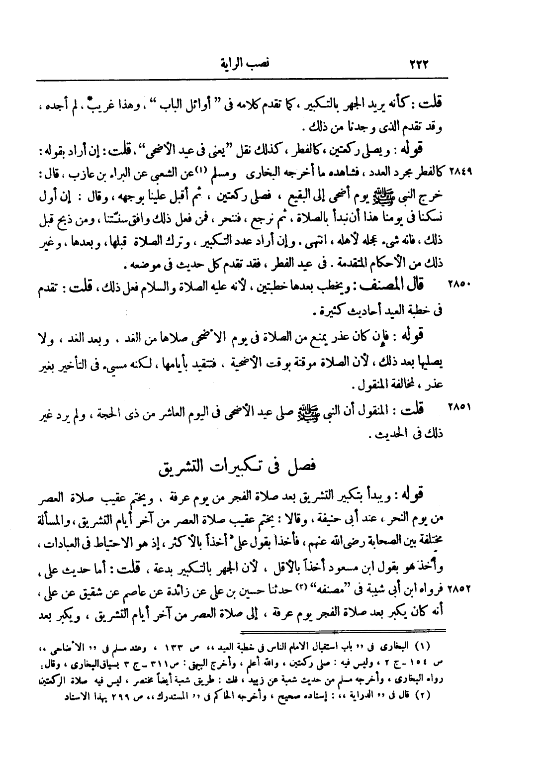 قَوْلُهُ: وَيَبْدَأُ بِتَكْبِيرِ التَّشْرِيقِ بَعْدَ صَلَاةِ الْفَجْرِ مِنْ يَوْمِ عَرَفَةَ، وَيَخْتِمُ عَقِيبَ صَلَاةِ الْعَصْرِ مِنْ يَوْمِ النَّحْرِ، عِنْدَ أَبِي حَنِيفَةَ، وَقَالَا: يَخْتِمُ عَقِيبَ صَلَاةِ الْعَصْرِ مِنْ آخِرِ أَيَّامِ التَّشْرِيقِ، وَالْمَسْأَلَةُ مُخْتَلِفَةٌ بَيْنَ الصَّحَابَةِ رضي الله عنهم، فَأَخَذَا بِقَوْلِ عَلِيٍّ أَخْذًا بِالْأَكْثَرِ، إذْ هُوَ الِاحْتِيَاطُ فِي الْعِبَادَاتِ، وَأَخَذَ هُوَ بِقَوْلِ ابْنِ مَسْعُودٍ أَخْذًا بِالْأَقَلِّ، لِأَنَّ الْجَهْرَ بِالتَّكْبِيرِ بِدْعَةٌ، قُلْت: أَمَّا حَدِيثُ عَلِيٍّ، فَرَوَاهُ ابْنُ أَبِي شَيْبَةَ في "مصنفه"2 ثم حُسَيْنُ بْنُ عَلِيٍّ عَنْ زَائِدَةَ عَنْ عَاصِمٍ عَنْ شَقِيقٍ عَنْ عَلِيٍّ، أَنَّهُ كَانَ يُكَبِّرُ بَعْدَ صَلَاةِ الْفَجْرِ يَوْمَ عَرَفَةَ، إلَى صَلَاةِ الْعَصْرِ مِنْ آخِرِ أَيَّامِ التَّشْرِيقِ، وَيُكَبِّرُ بَعْدَ
