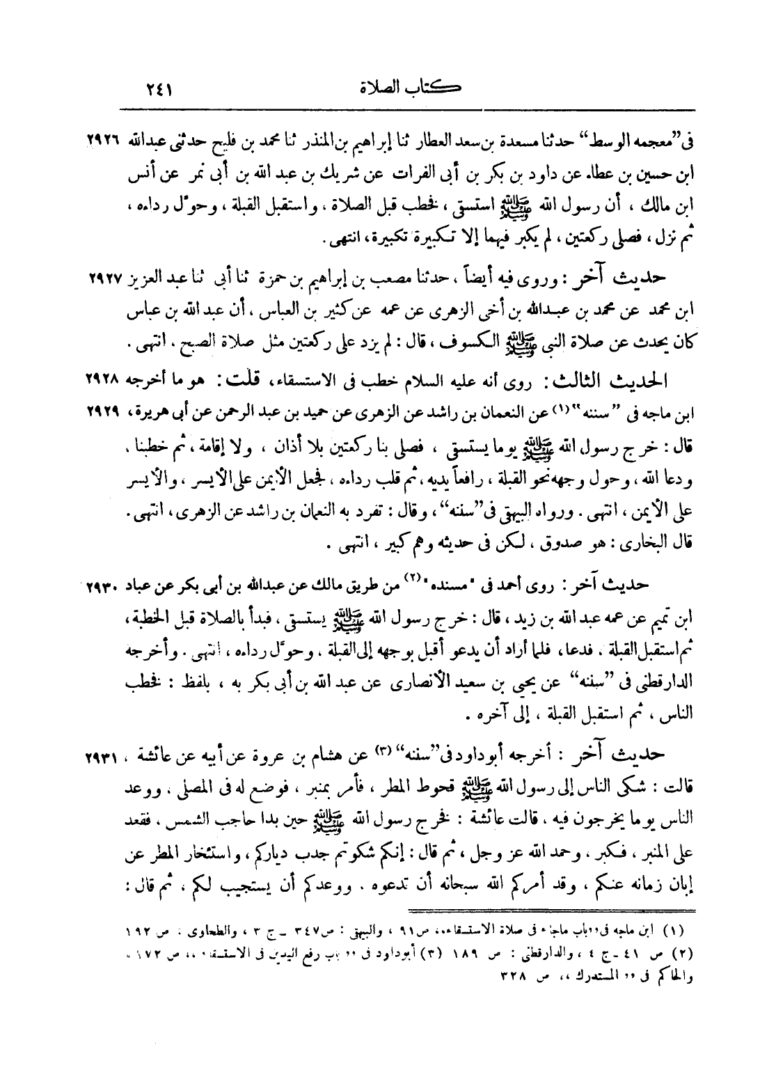 1 ابن ماجه في "باب ما جاء في صلاة الاستسقاء" ص 91، والبيهقي: ص 347 ج 3، والطحاوي: ص 192.