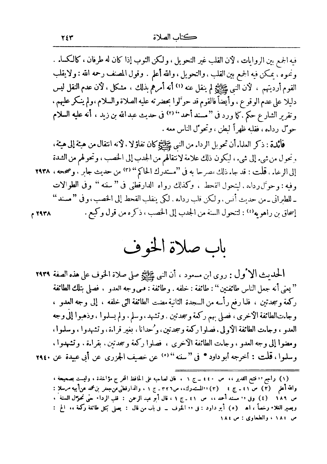 1راجع "فتح القدير" ص 440 ج 1، فإن لصاحبه على الحافظ المخرج مؤاخذة، وليست بصحيحة، والله أعلم.