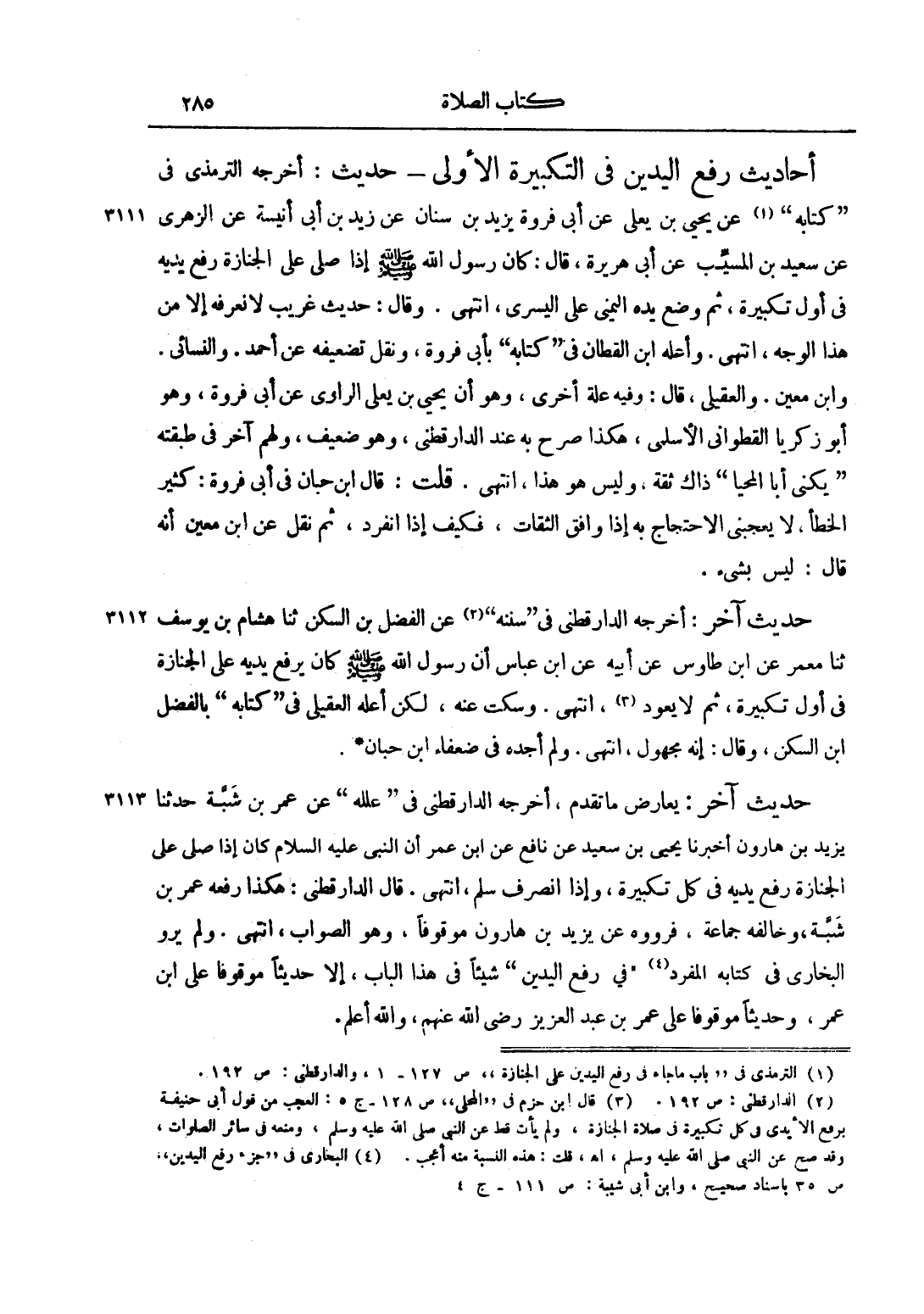 1 الترمذي في "باب ما جاء في رفع اليدين على الجنازة" ص 127 ج 1، والدارقطني: ص 102.