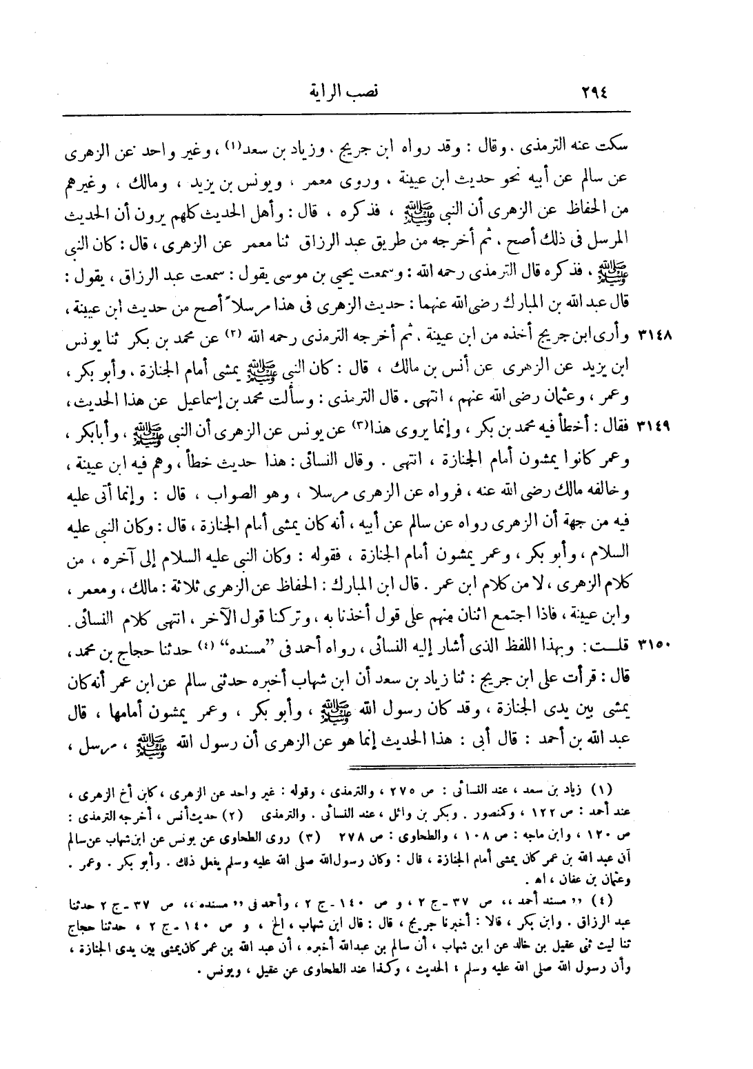 4 "مسند أحمد" ص 37 ج 2، وص 140 ج 2، وأحمد في "مسنده" ص 37 ج 2 حدثنا عبد الرزاق. وابن بكر، قالا: أخبرنا جريج، قال: قال ابن شهاب، الخ، وص 140 ج 2، حدثنا حجاج حدثنا ليث حدثني عقيل بن خالد عن ابن شهاب، أن سالم بن عبد الله أخبره، أن عبد الله بن عمر كان يمشي بين يدي الجنازة، وأن رسول الله صَلَّى اللَّهُ عَلَيْهِ وَسَلَّمَ، الحديث، وكذا عند الطحاوي عن عقيل، ويونس.