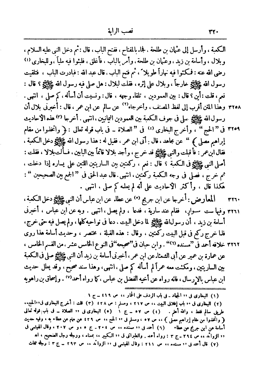 الْمُعَارِضُ: أَخْرَجَا عَنْ ابْنِ جُرَيْجٍ5 عَنْ عَطَاءٍ عَنْ ابْنِ عَبَّاسٍ أَنَّ النَّبِيَّ صَلَّى اللَّهُ عَلَيْهِ وَسَلَّمَ دَخَلَ الْكَعْبَةَ، وَفِيهَا سِتُّ سَوَارِي، فَقَامَ عِنْدَ سَارِيَةٍ، فَدَعَا، وَلَمْ يُصَلِّ، انْتَهَى. وَبِهِ عَنْ ابْنِ عَبَّاسٍ، أَخْبَرَنِي أُسَامَةُ بْنُ زَيْدٍ، أَنَّ رَسُولَ اللَّهِ صَلَّى اللَّهُ عَلَيْهِ وَسَلَّمَ لَمَّا دَخَلَ الْبَيْتَ، دَعَا فِي نَوَاحِيهِ كُلِّهَا، وَلَمْ يُصَلِّ فِيهِ حَتَّى خَرَجَ، فَلَمَّا خَرَجَ رَكَعَ فِي قِبَلِ الْبَيْتِ رَكْعَتَيْنِ، وَقَالَ: هَذِهِ الْقِبْلَةُ، مُخْتَصَرٌ، وَحَدِيثُ أُسَامَةَ هَذَا رَوَى خِلَافَهُ أَحْمَدُ فِي "مُسْنَدِهِ6". وَابْنُ حِبَّانَ فِي "صَحِيحِهِ" فِي النَّوْعِ الْخَامِسِ عَشَرَ، مِنْ الْقِسْمِ الْخَامِسِ، عَنْ عُمَارَةَ بْنِ عُمَيْرٍ عَنْ أَبِي الشَّعْثَاءِ عَنْ ابْنِ عُمَرَ، أَخْبَرَنِي أُسَامَةُ بْنُ زَيْدٍ أَنَّ النَّبِيَّ صَلَّى اللَّهُ عَلَيْهِ وَسَلَّمَ صَلَّى فِي الْكَعْبَةِ بَيْنَ السَّارِيَتَيْنِ، وَمَكَثْتُ مَعَهُ عُمْرًا لَمْ أَسْأَلْهُ كَمْ صَلَّى، انْتَهَى. وَهَذَا سَنَدٌ صَحِيحٌ، وَقَدْ يُعَلَّلُ حَدِيثُ ابْنِ عَبَّاسٍ بِالْإِرْسَالِ، فَإِنَّهُ رَوَاهُ عَنْ أَخِيهِ الْفَضْلِ بْنِ عَبَّاسٍ، كَمَا رَوَاهُ أَحْمَدُ7. وَإِسْحَاقُ بْنُ رَاهْوَيْهِ
