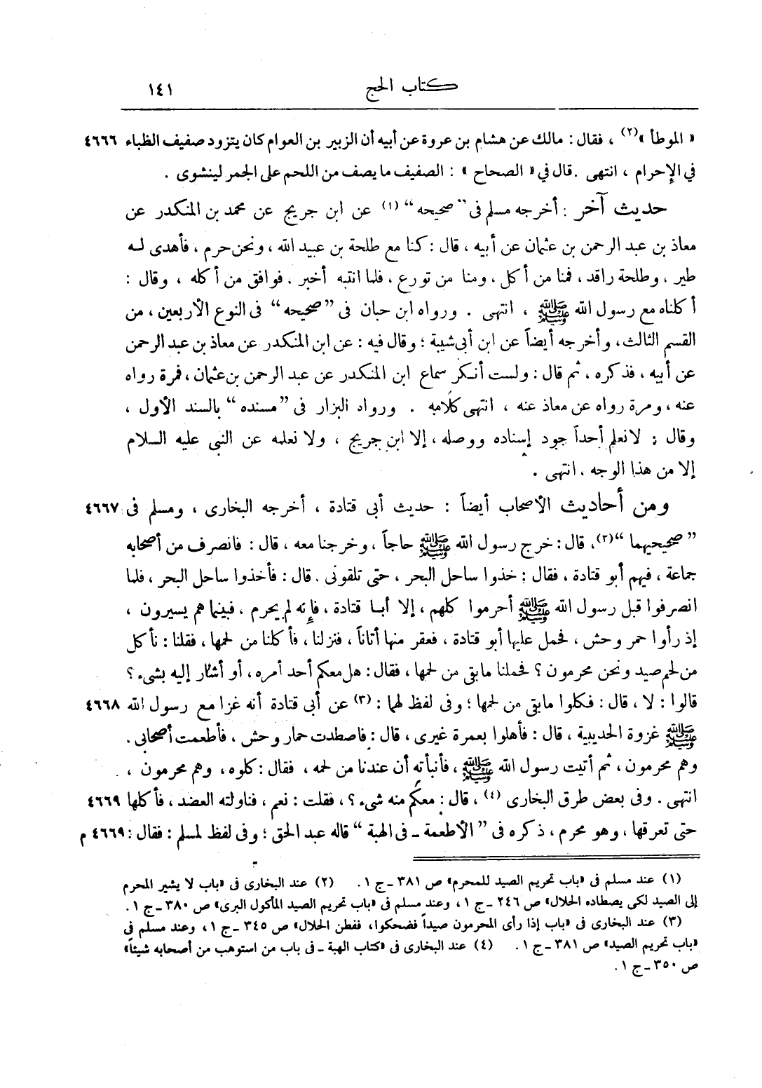 2 عند البخاري في "باب لا يشير المحرم إلى الصيد لكي يصطاده الحلال" ص 246 - ج 1، وعند مسلم في "باب تحريم الصيد المأكول البري" ص 380 - ج 1.
