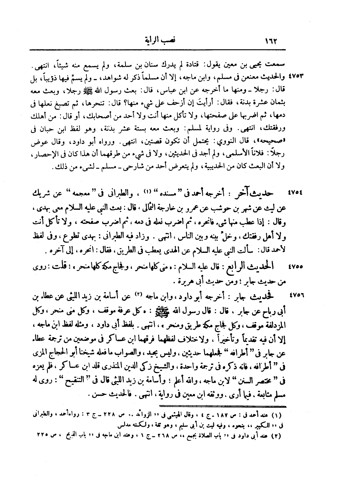 فَحَدِيثُ جَابِرٍ: أَخْرَجَهُ أَبُو دَاوُد، وَابْنُ مَاجَهْ 2 عَنْ أُسَامَةَ بْنِ زَيْدٍ اللَّيْثِيِّ عَنْ عَطَاءِ بْنِ أَبِي رَبَاحٍ عَنْ جَابِرٍ، قَالَ: قَالَ رَسُولُ اللَّهِ صَلَّى اللَّهُ عَلَيْهِ وَسَلَّمَ: "كُلُّ عَرَفَةَ مَوْقِفٌ، وَكُلُّ مِنًى مَنْحَرٌ، وَكُلُّ الْمُزْدَلِفَةِ مَوْقِفٌ، وَكُلُّ فِجَاجِ مَكَّةَ طَرِيقٌ وَمَنْحَرٌ"، انْتَهَى. بِلَفْظِ أَبِي دَاوُد، وَمِثْلُهُ لَفْظُ ابْنِ مَاجَهْ، إلَّا أَنَّ فِيهِ تَقْدِيمًا وَتَأْخِيرًا، وَلِاخْتِلَافِ لَفْظِهِمَا فَرَّقَهُمَا ابْنُ عَسَاكِرَ فِي مَوْضِعَيْنِ مِنْ تَرْجَمَةِ عَطَاءٍ عَنْ جَابِرٍ فِي "أَطْرَافِهِ" فَجَعَلَهُمَا حَدِيثَيْنِ، وَلَيْسَ بِجَيِّدٍ، وَالصَّوَابُ مَا فَعَلَهُ شَيْخُنَا أَبُو الْحَجَّاجِ الْمِزِّيُّ فِي "أَطْرَافِهِ" فَإِنَّهُ ذَكَرَهُ فِي تَرْجَمَةٍ وَاحِدَةٍ، وَالشَّيْخُ زَكِيُّ الدِّينِ الْمُنْذِرِيُّ قَلَّدَ ابْنَ عَسَاكِرَ، فَلَمْ يَعْزُهُ فِي "مُخْتَصَرِ السُّنَنِ" لِابْنِ مَاجَهْ، وَاَللَّهُ أَعْلَمُ، وَأُسَامَةُ بْنُ زَيْدٍ اللَّيْثِيُّ قَالَ فِي "التَّنْقِيحِ": رَوَى لَهُ مُسْلِمٌ مُتَابَعَةً، فِيمَا أَرَى، وَوَثَّقَهُ ابْنُ مَعِينٍ فِي رِوَايَةٍ، انْتَهَى. فَالْحَدِيثُ حَسَنٌ.