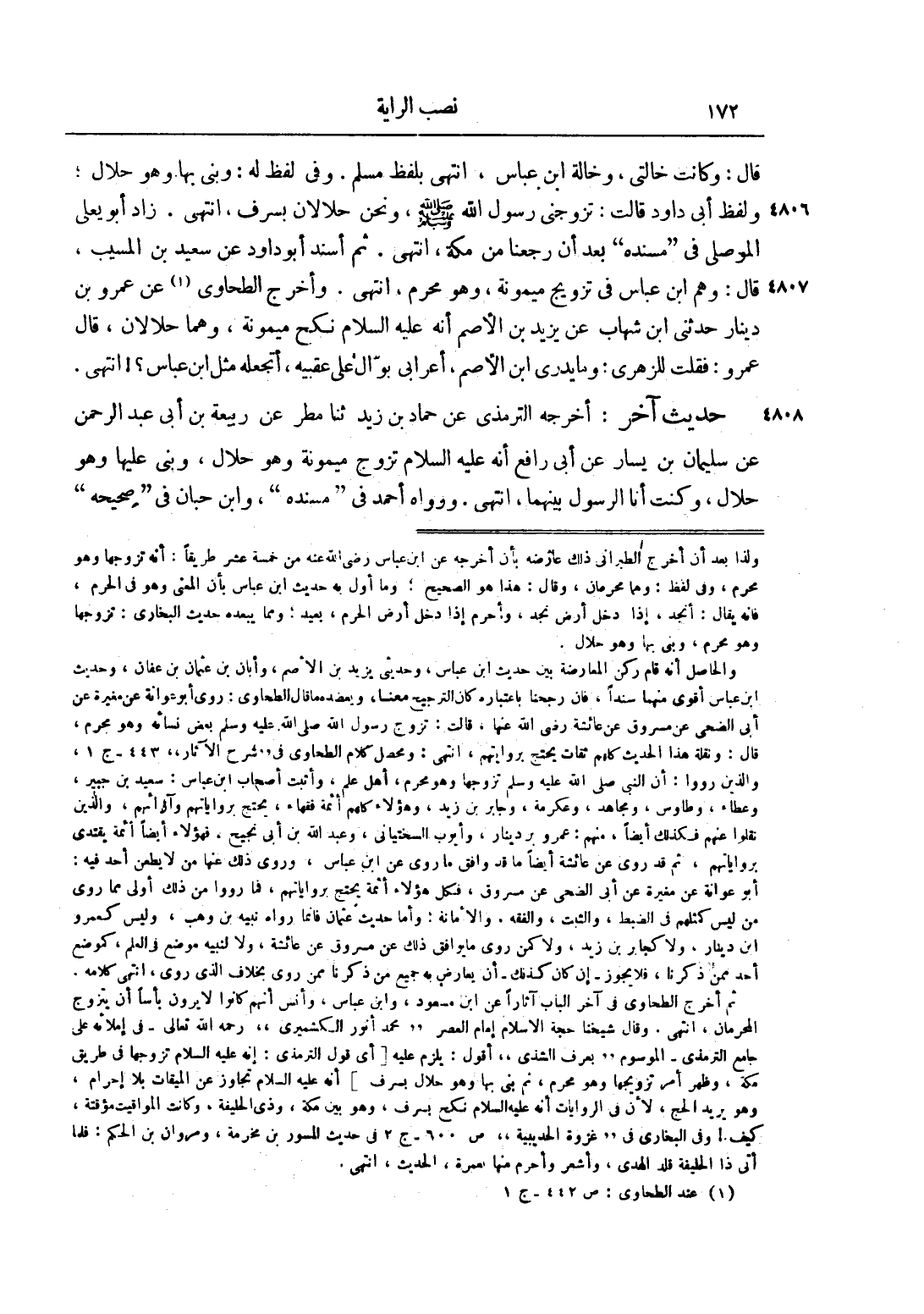 والحاصل أنه قام ركن المعارضة بين حديث ابن عباس، وحديثي يزيد بن الأصم، وأبان بن عثمان بن عفان، وحديث ابن عباس أقوى منهما سنداً، فإن رجحنا باعتباره كان الترجيح معنا، ويعضده ما قال الطحاوي: روى أبو عوانة عن مغيرة عن أبي الضحى عن مسروق عن عائشة رضي الله عنها، قالت: تزوج رسول الله صَلَّى اللَّهُ عَلَيْهِ وَسَلَّمَ بعض نسائه وهو محرم، قال: ونقلة هذا الحديث كلهم ثقات يحتج بروايتهم، انتهى: ومحصل كلام الطحاوي في "شرح الآثار" 443 - ج 1، والذين رووا: أن النبي صَلَّى اللَّهُ عَلَيْهِ وَسَلَّمَ تزوجها وهو محرم، أهل علم، وأثبت أصحاب ابن عباس: سعيد بن جبير، وعطاء، وطاوس، ومجاهد، وعكرمة، وجابر بن زيد، وهؤلاء كلهم أئمة فقهاء، يحتج برواياتهم وآرائهم، والذين نقلوا عنهم فكذلك أيضاً، منهم: عمرو بن دينار، وأيوب السختياني، وعبد الله بن أبي نجيح، فهؤلاء أيضاً أئمة يقتدى برواياتهم، ثم قد روي عن عائشة أيضاً ما قد وافق ما روي عن ابن عباس، وروى ذلك عنها من لا يطعن أحد فيه: أبو عوانة عن مغيرة عن أبي الضحى عن مسروق، فكل هؤلاء أئمة يحتج برواياتهم، فما رووا من ذلك أولى مما روى من ليس كمثلهم في الضبط، والثبت، والفقه، والأمانة، وأما حديث عثمان فإنما رواه نبيه بن وهب، وليس كعمرو ابن دينار، ولا كجابر بن زيد، ولا كمن روى ما يوافق ذلك عن مسروق عن عائشة، ولا لنبيه موضع في العلم، كموضع أحد ممن ذكرنا، فلا يجوز - إن كان كذلك - أن يعارض به جميع من ذكرنا ممن روى بخلاف الذي روى، انتهى كلامه.