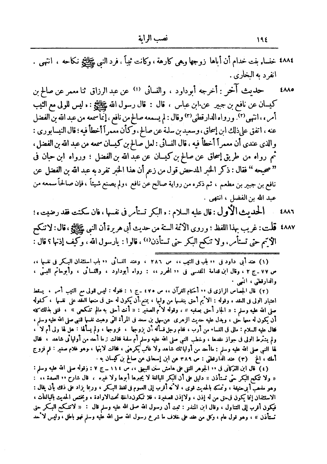 الْحَدِيثُ الْأَوَّلُ: قَالَ عليه السلام: "الْبِكْرُ تُسْتَأْمَرُ فِي نَفْسِهَا، فَإِنْ سَكَتَتْ فَقَدْ رَضِيَتْ"، قُلْت: غَرِيبٌ بِهَذَا اللَّفْظِ، وَرَوَى الْأَئِمَّةُ السِّتَّةُ مِنْ حَدِيثِ أَبِي هُرَيْرَةَ أَنَّ النَّبِيَّ صَلَّى اللَّهُ عَلَيْهِ وَسَلَّمَ، قَالَ: "لَا تُنْكَحُ الْأَيِّمُ حَتَّى تُسْتَأْمَرَ، وَلَا تُنْكَحُ الْبِكْرُ حَتَّى تُسْتَأْذَنَ" 4، قَالُوا: يَا رَسُولَ اللَّهِ، وَكَيْفَ إذْنُهَا؟ قَالَ: