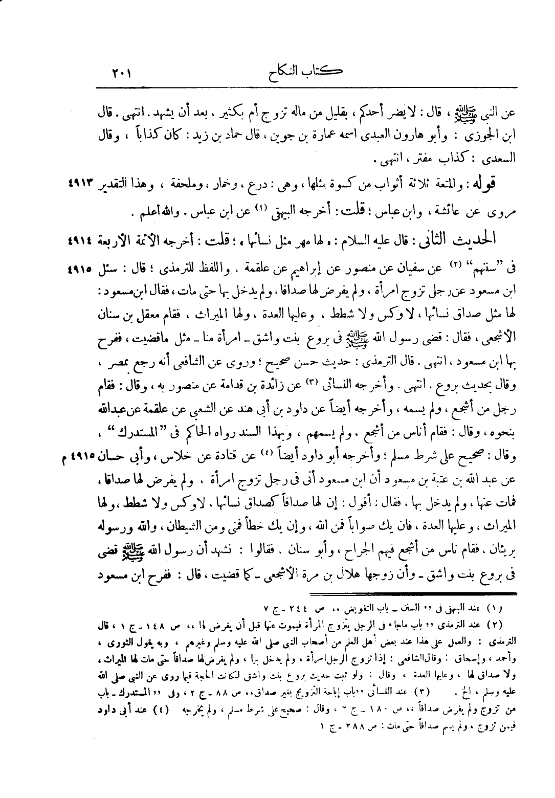 3 عند النسائي "باب إباحة التزويج بغير صداق" ص 88 - ج 2، وفي "المستدرك - باب من تزوج ولم يفرض صداقاً" ص 180 - ج 2، وقال: صحيح على شرط مسلم، ولم يخرجه.