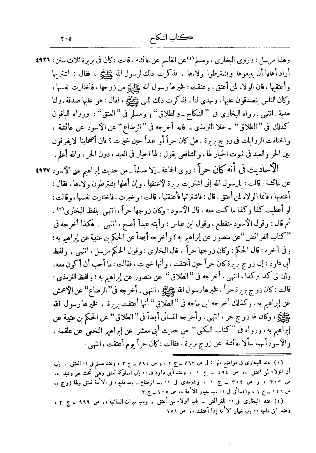 2 عند البخاري في "الفرائض، باب الولاء لمن أعتق، وباب ميراث السائبة" ص 999 - ج 2، وعند ابن ماجه "باب خيار الأمة إذا أعتقت" ص 151.