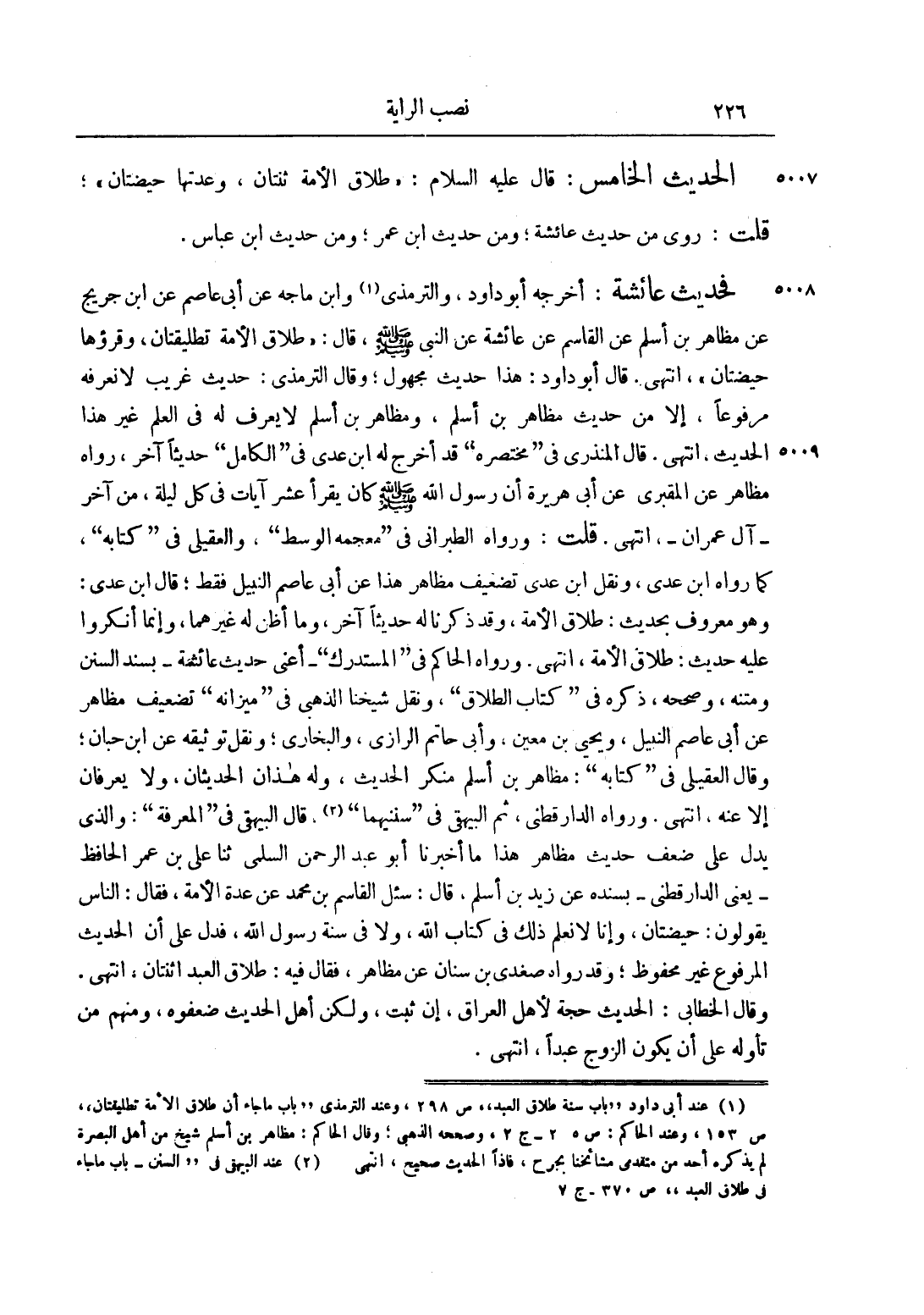 1 عند أبي داود "باب سنة طلاق العبد" ص 268، وعند الترمذي "باب ما جاء أن طلاق الأمة تطليقتان" ص 153، وعند الحاكم: ص 25 - ج 2، وصححه الذهبي، وقال الحاكم: مظاهر بن أسلم شيخ من أهل البصرة لم يذكره أحد من متقدمي مشائخنا بجرح، فإذاً الحديث صحيح، انتهى.