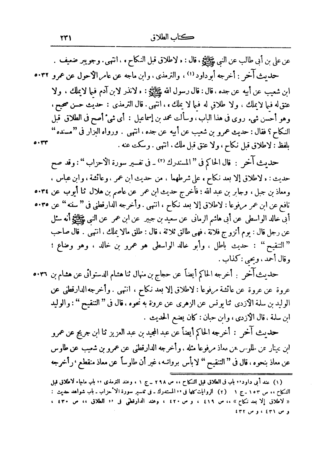 1 عند أبي داود "باب في الطلاق قبل النكاح" ص 298 -ج 1، وعند الترمذي "باب ما جاء لا طلاق قبل النكاح"ص 153 -ج 1